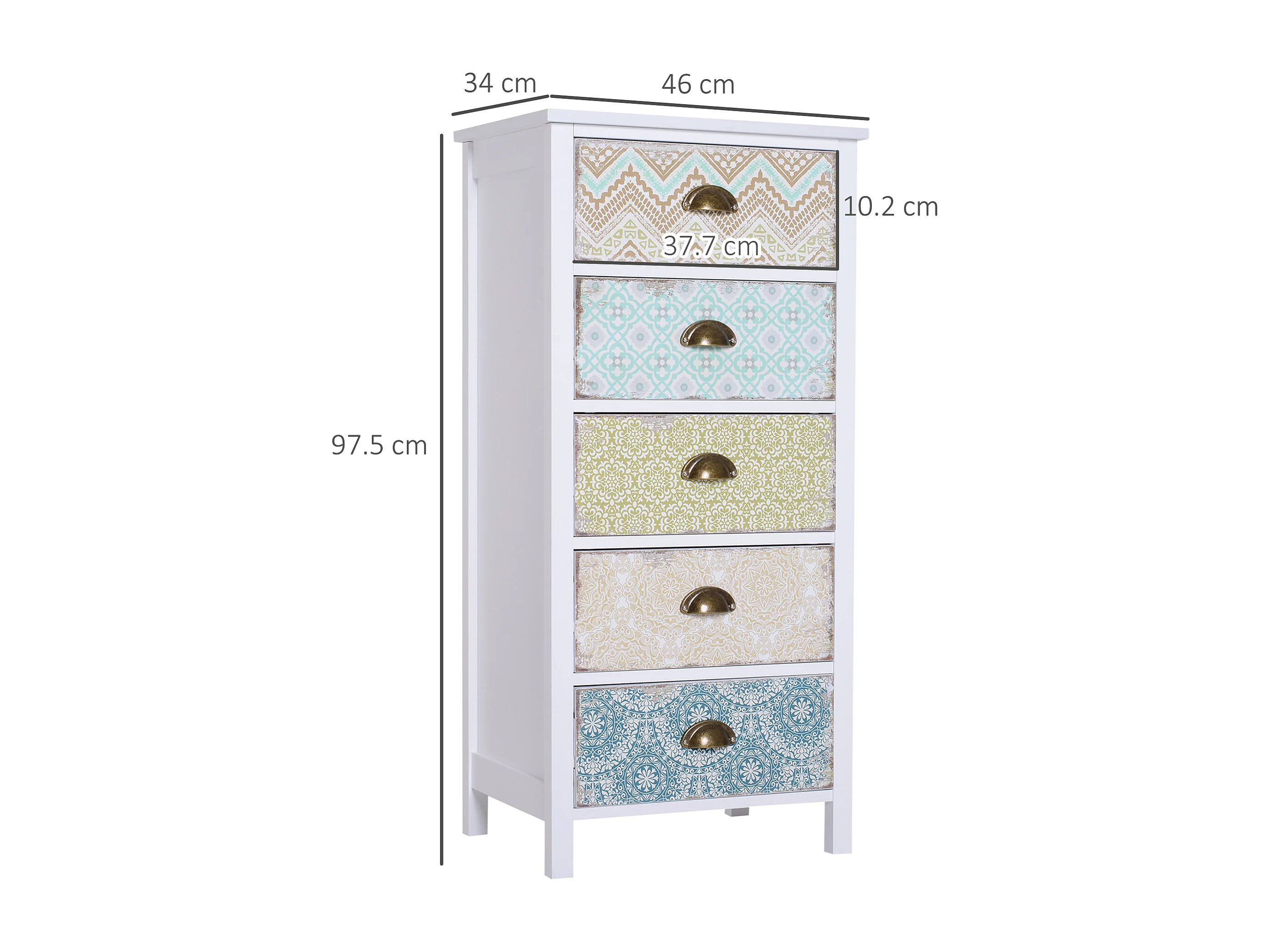 Cassettiera 5 cassetti salvaspazio 74x40x91cm in legno bianco