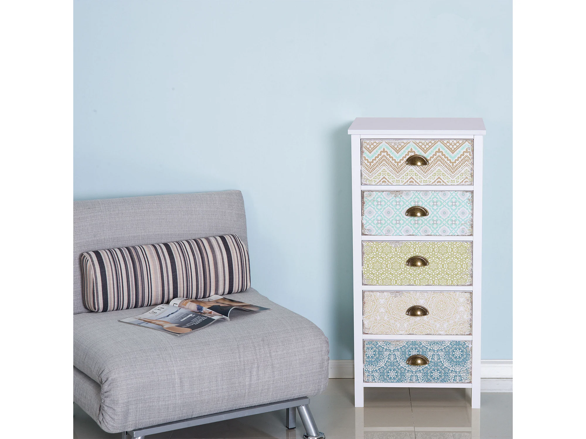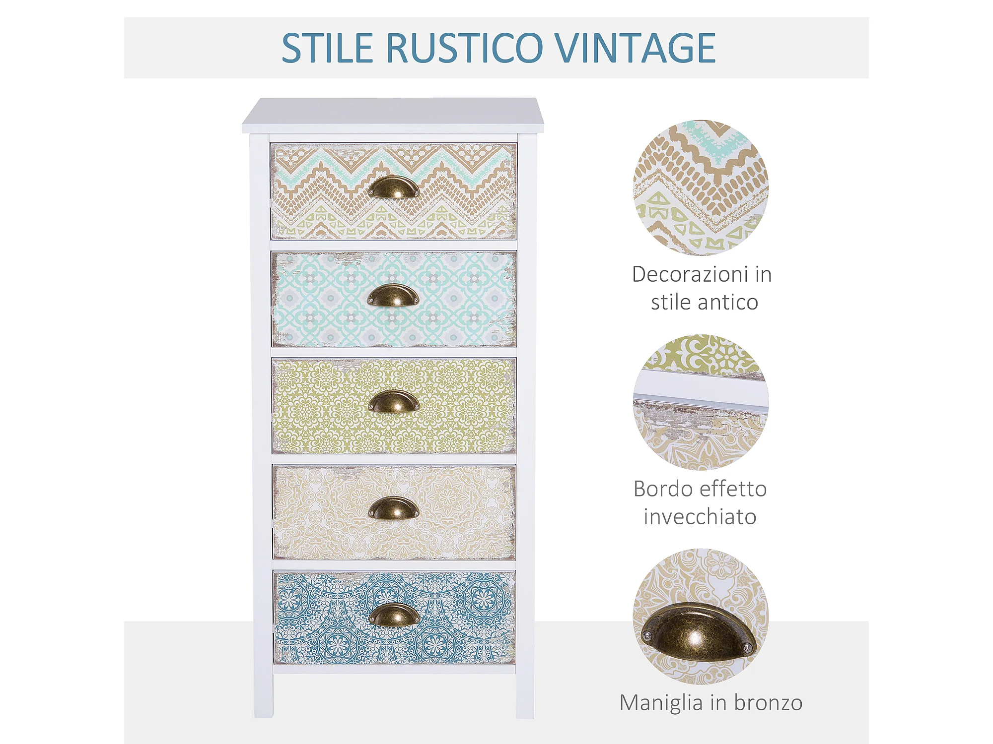 Cassettiera mobiletto vintage con cassetti stile in legno bianco