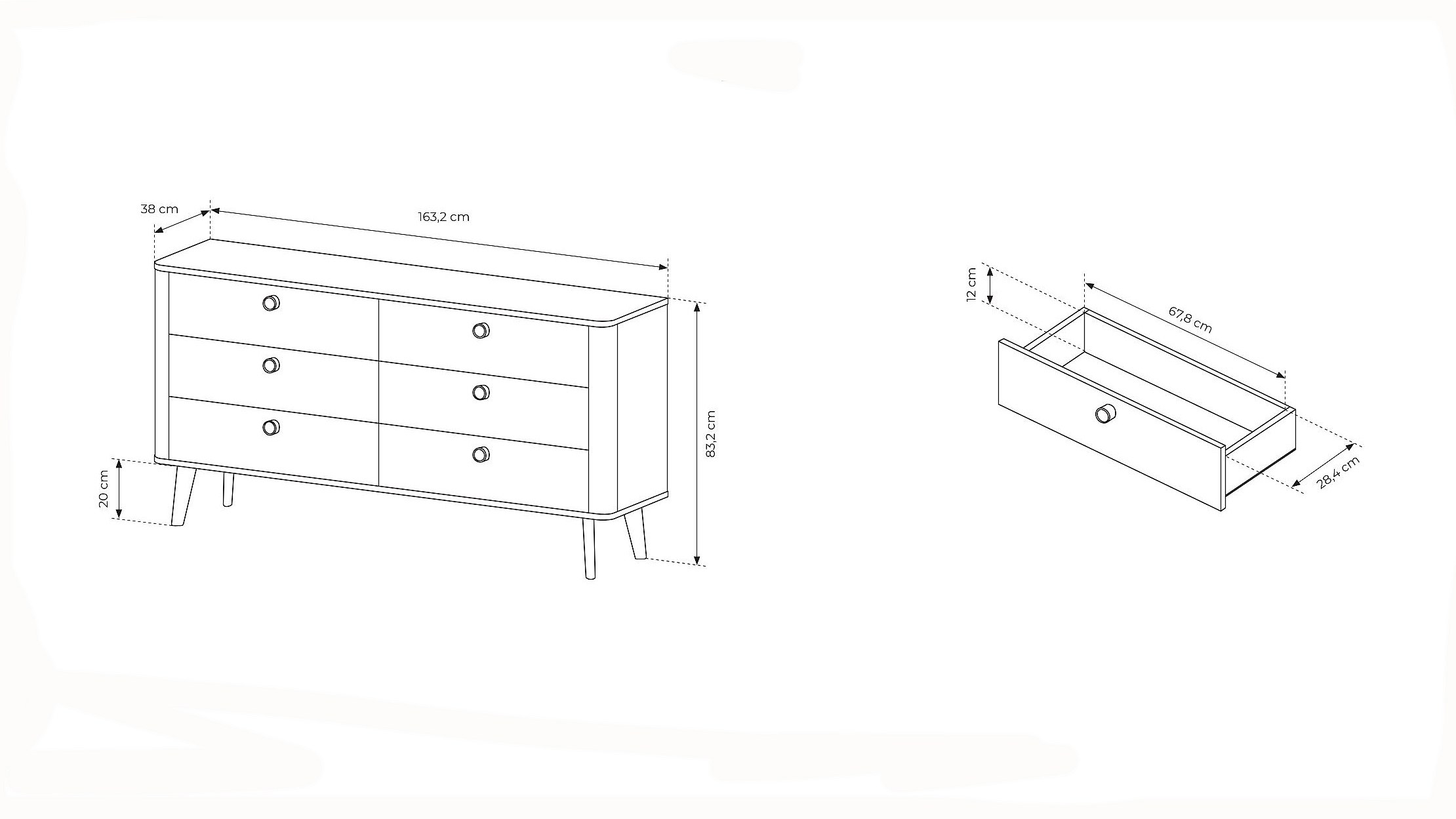 Cassettiera moderna 163,2x83,2 cm con 6 cassetti in rovere chiaro CLK15