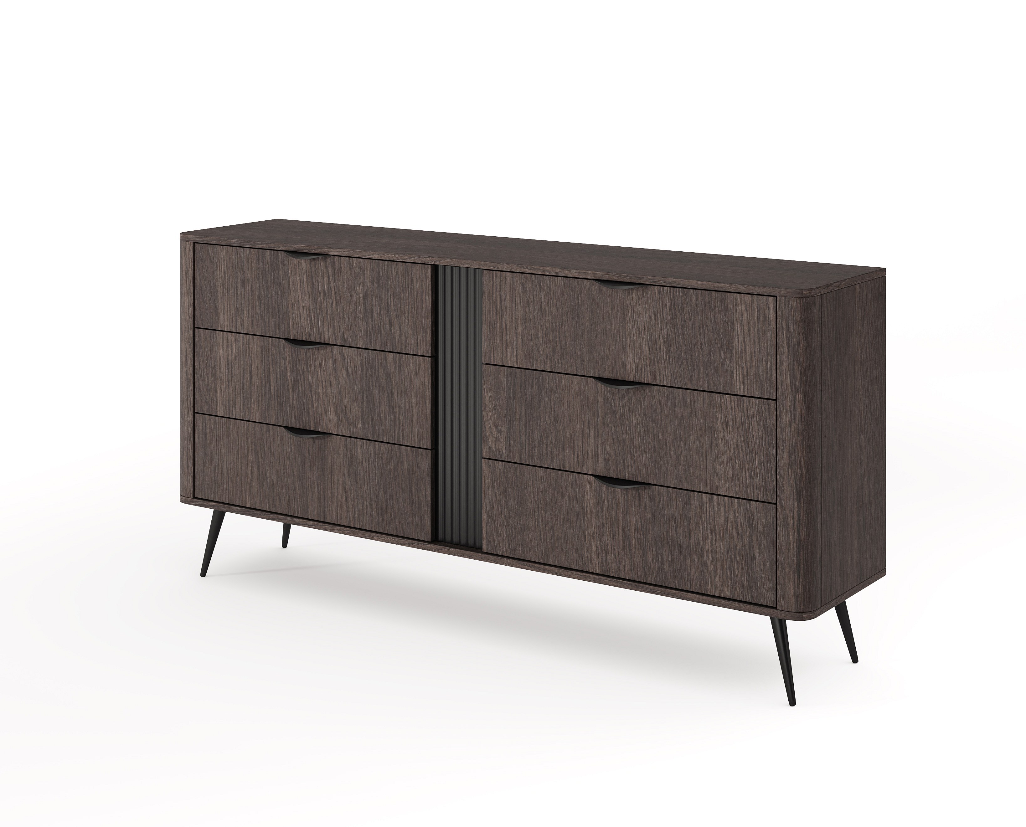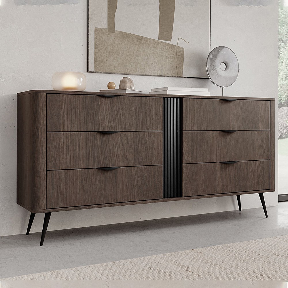 Cassettiera moderna 163x81 cm con 6 cassetti quercia scuro CLK13