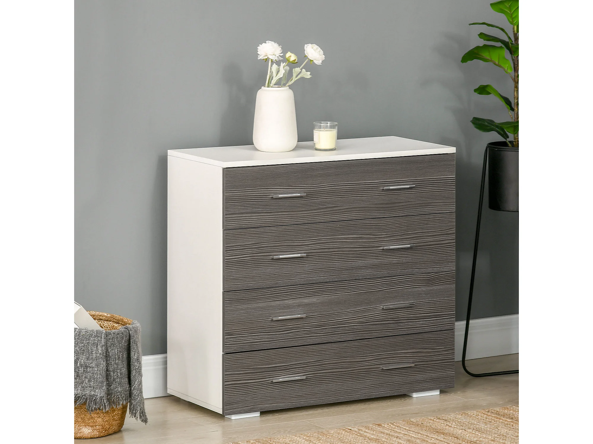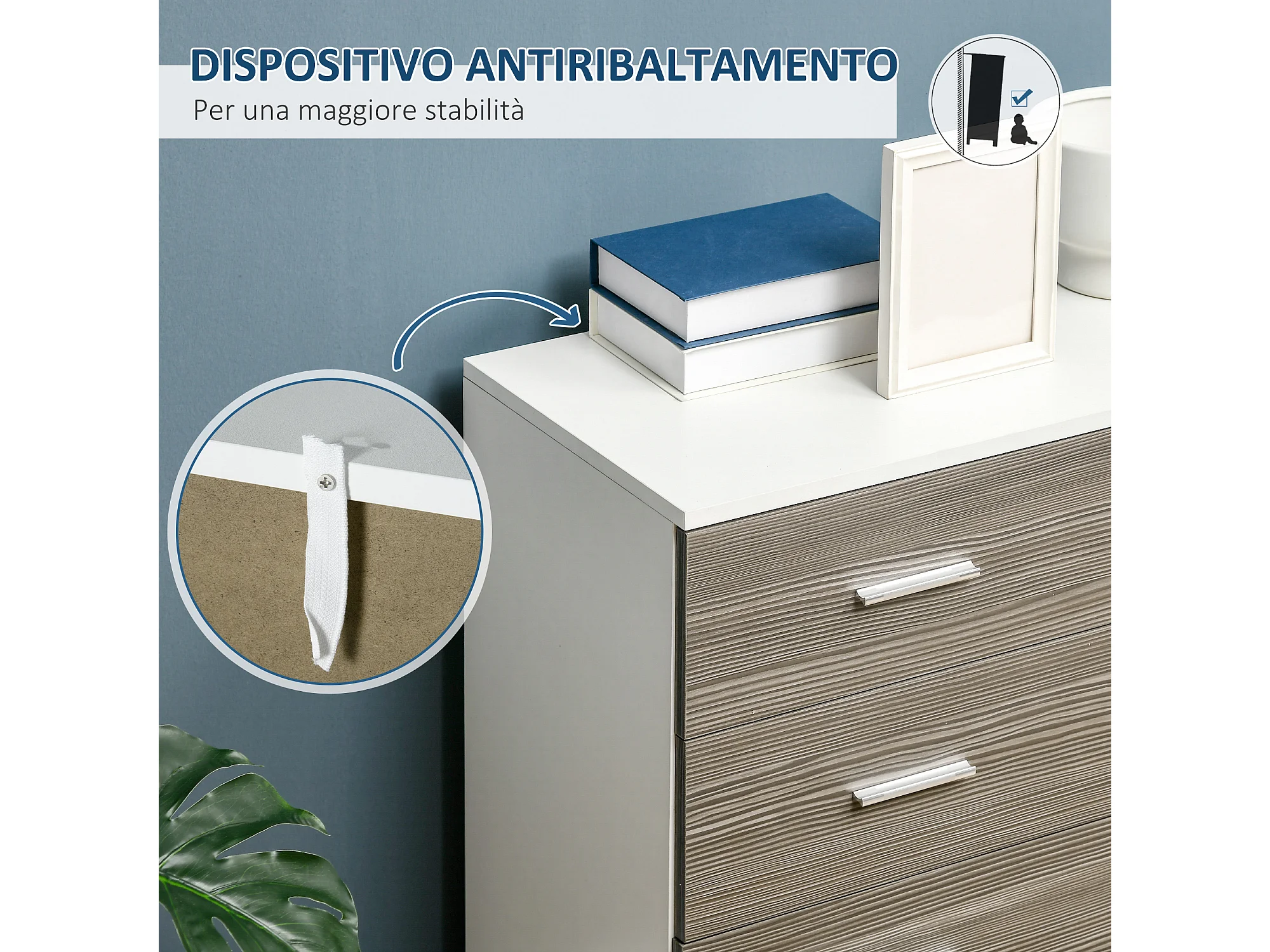 Cassettiera moderna 4 cassetti legno bianco grigio 76x35x72cm
