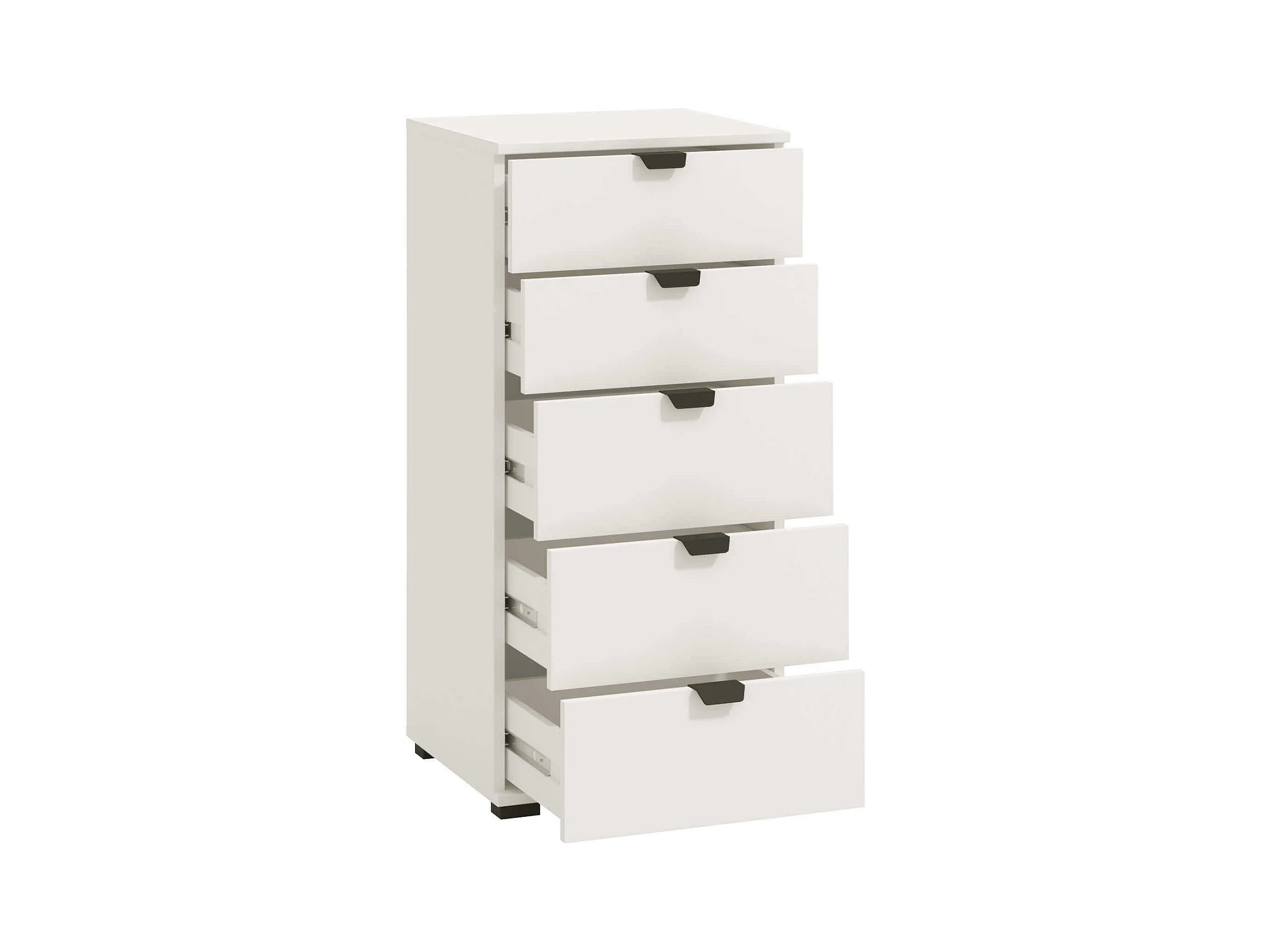 Cassettiera Roseville, Settimanale a 5 cassetti, Mobile Comò per camera da letto, Settimanale moderno, 61x40h117 cm, Bianco