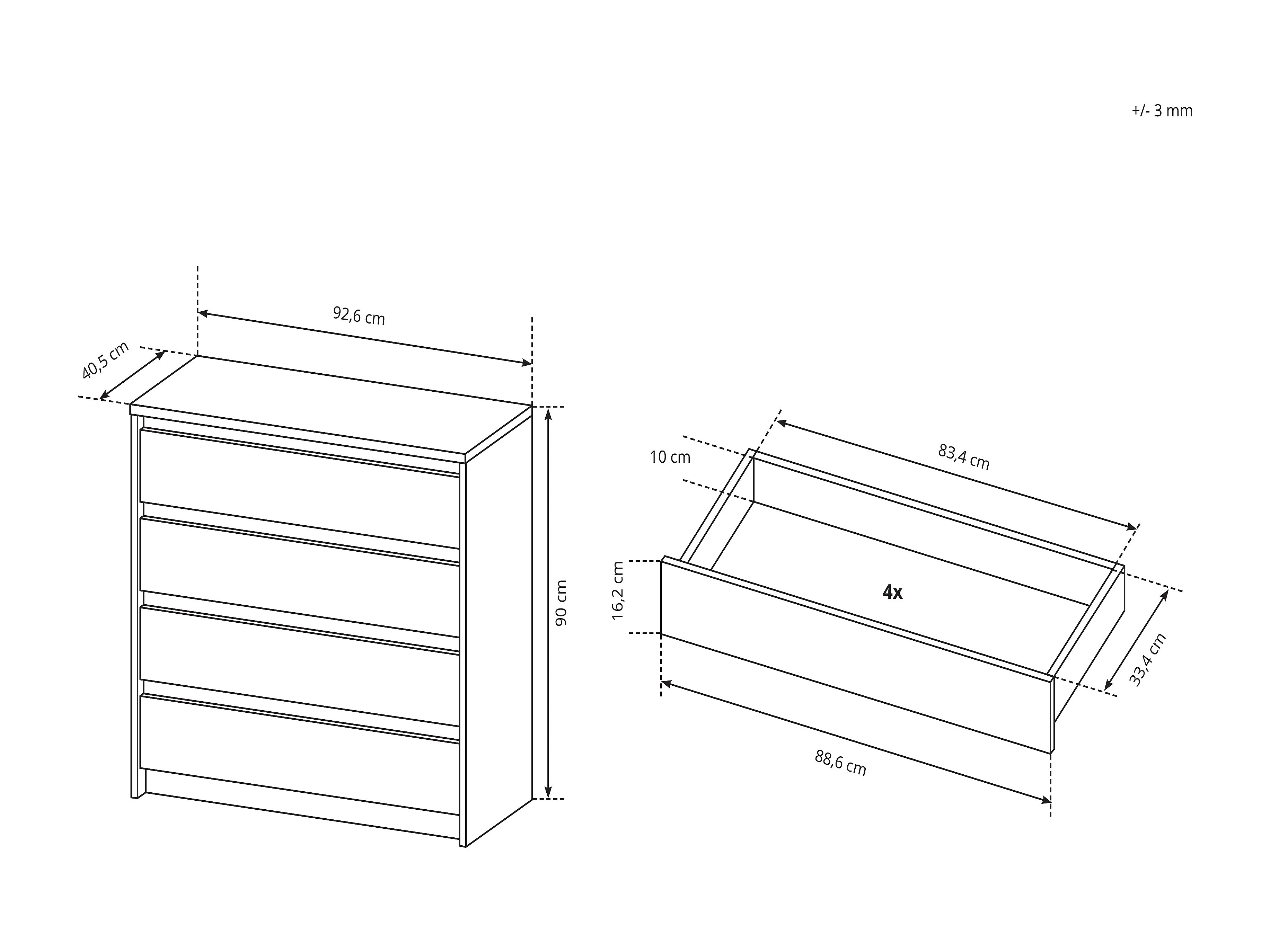 Cassettiera camera da letto con quattro cassetti CI3003 80x91 rovere e bianco lucido