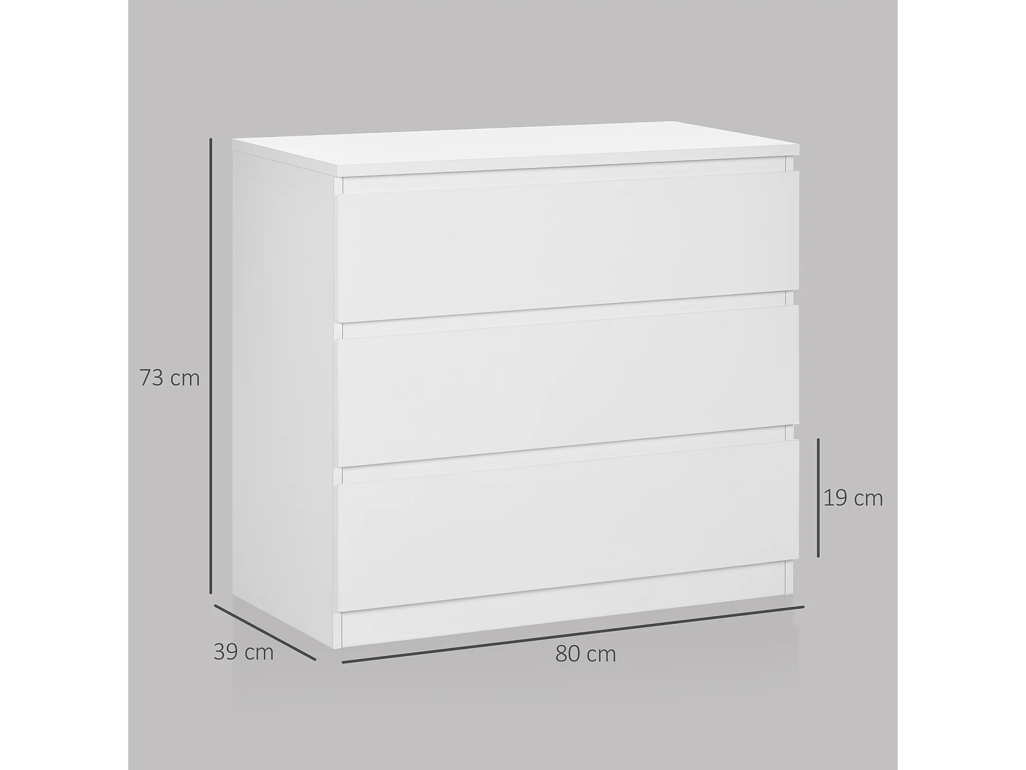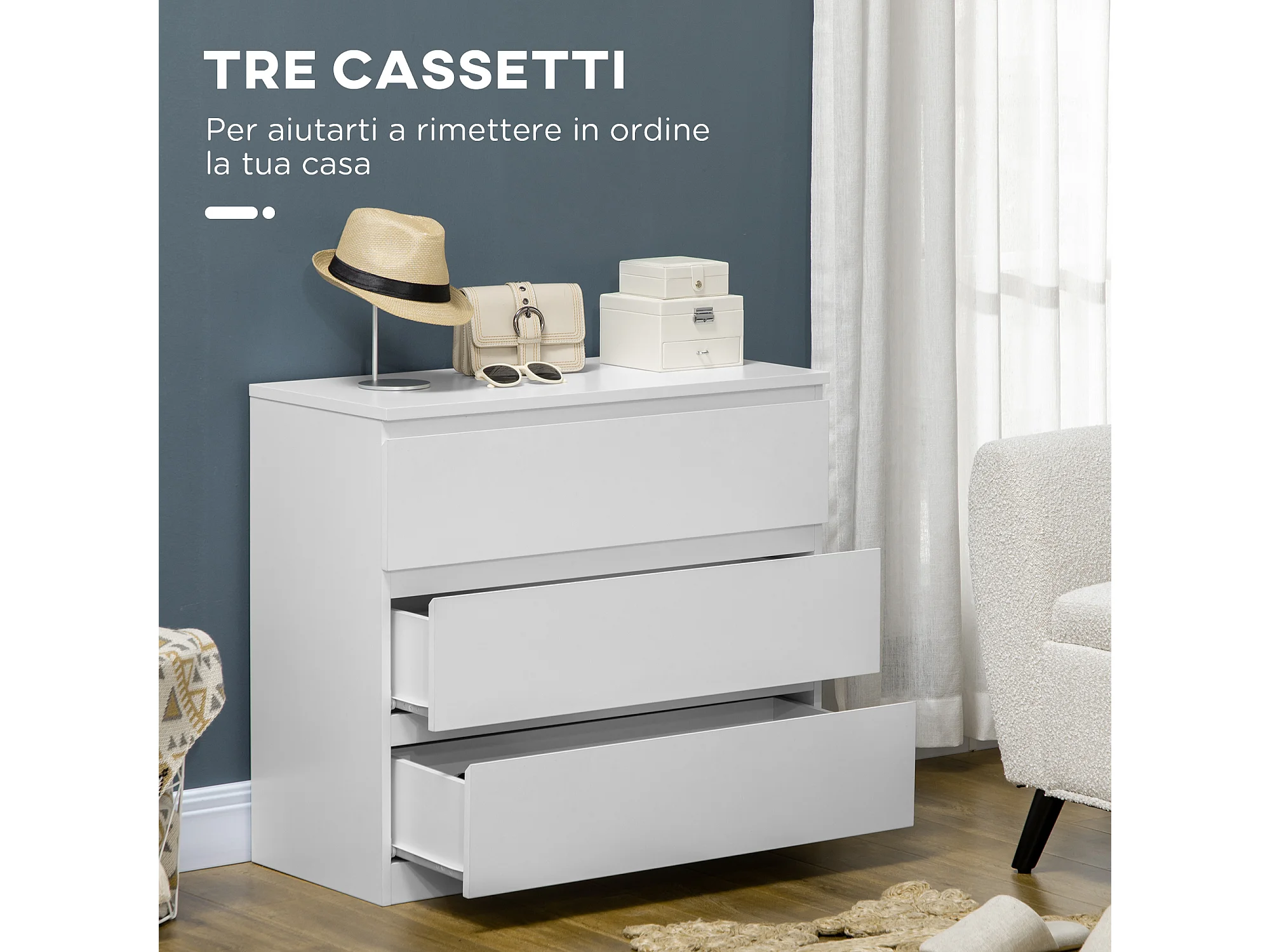 Cassettiera moderna a 3 cassetti per camera da letto bianco