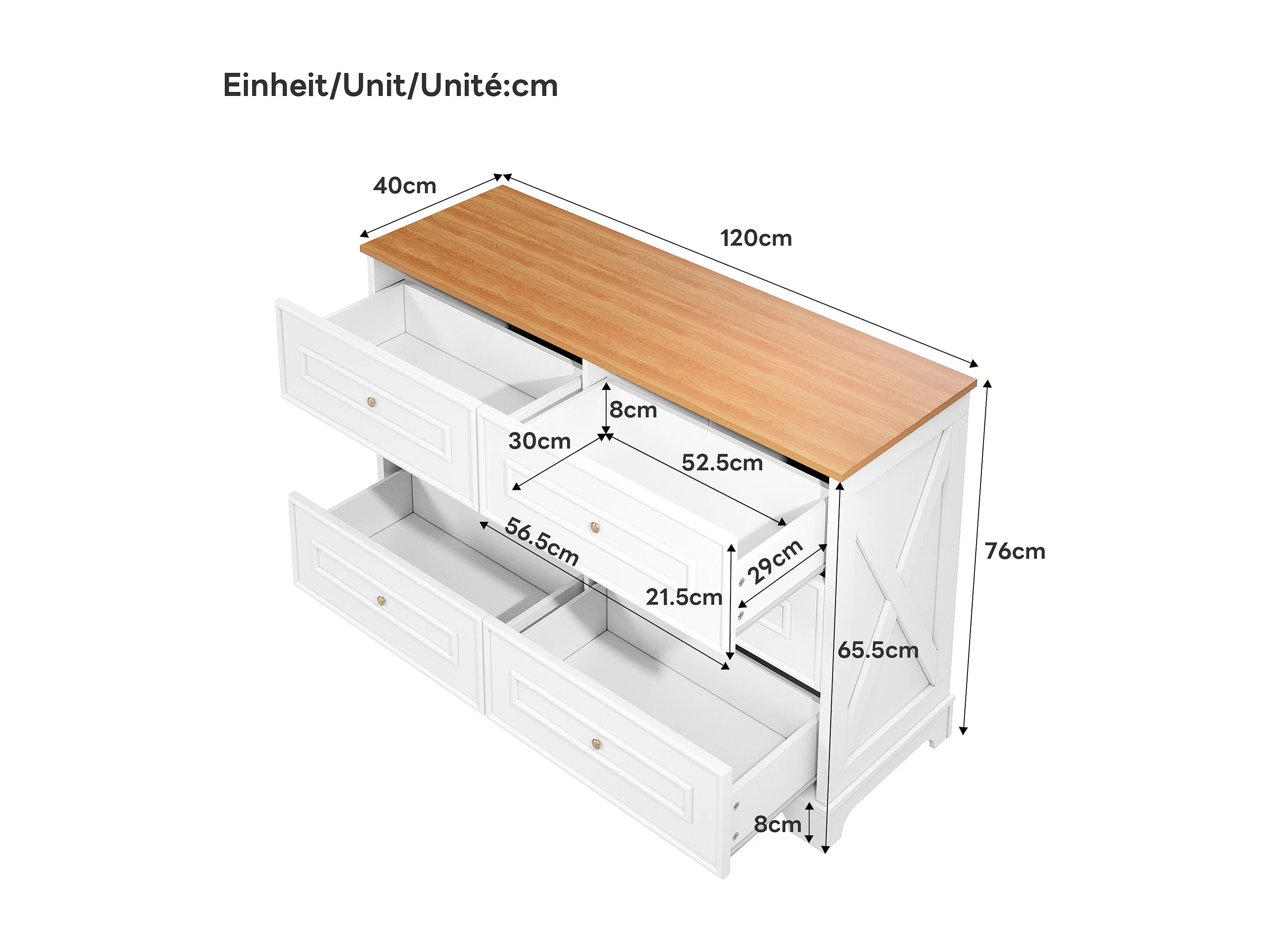Cassettiera moderna a 6 cassetti - 120 x 40 x 76 cm - per soggiorno, sala da pranzo e ingresso - MDF e truciolato - bianco