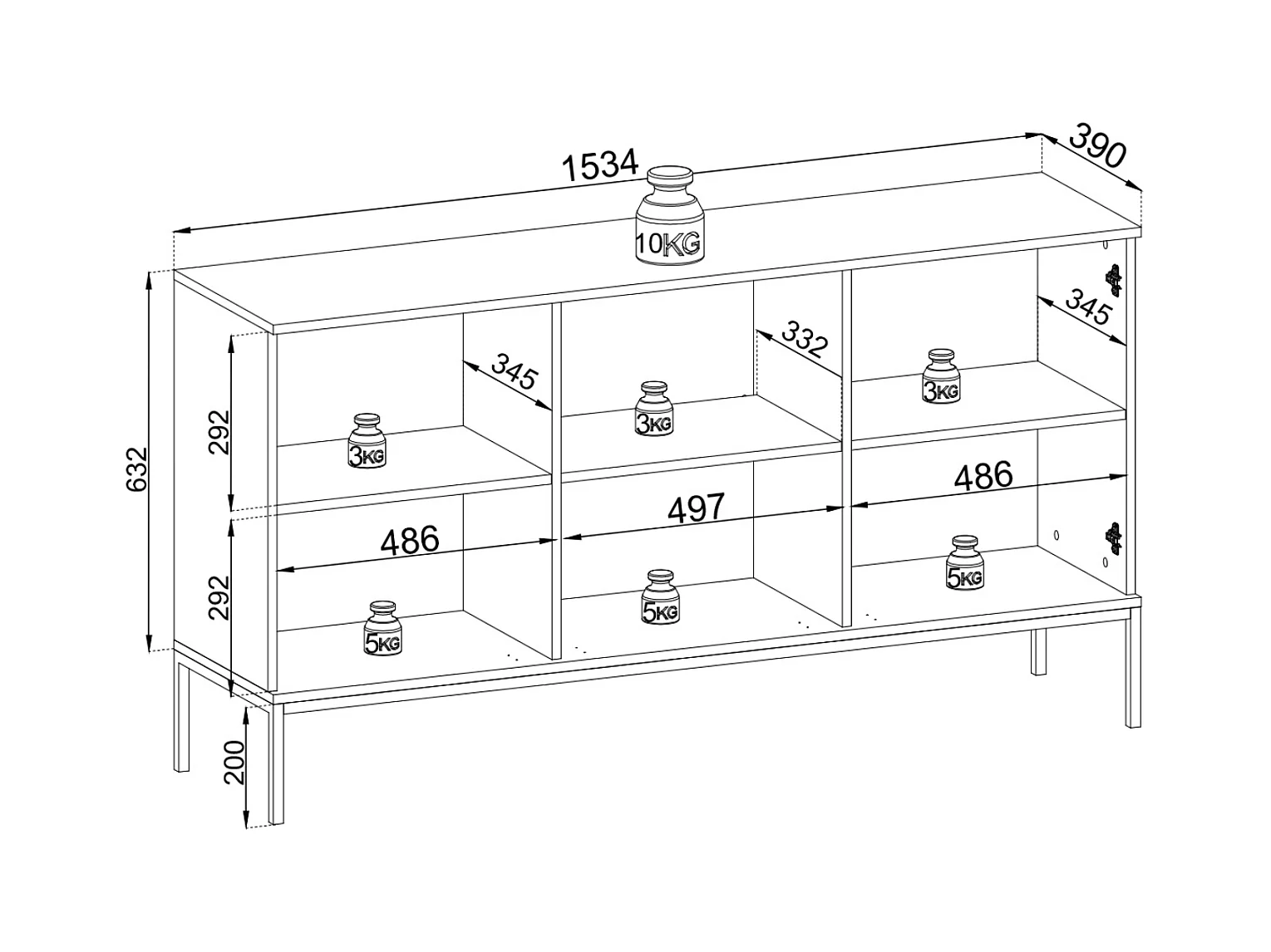 Credenza con 3 cassetti, 4 ante, MDF, bianco e legno (140x39x90 cm)