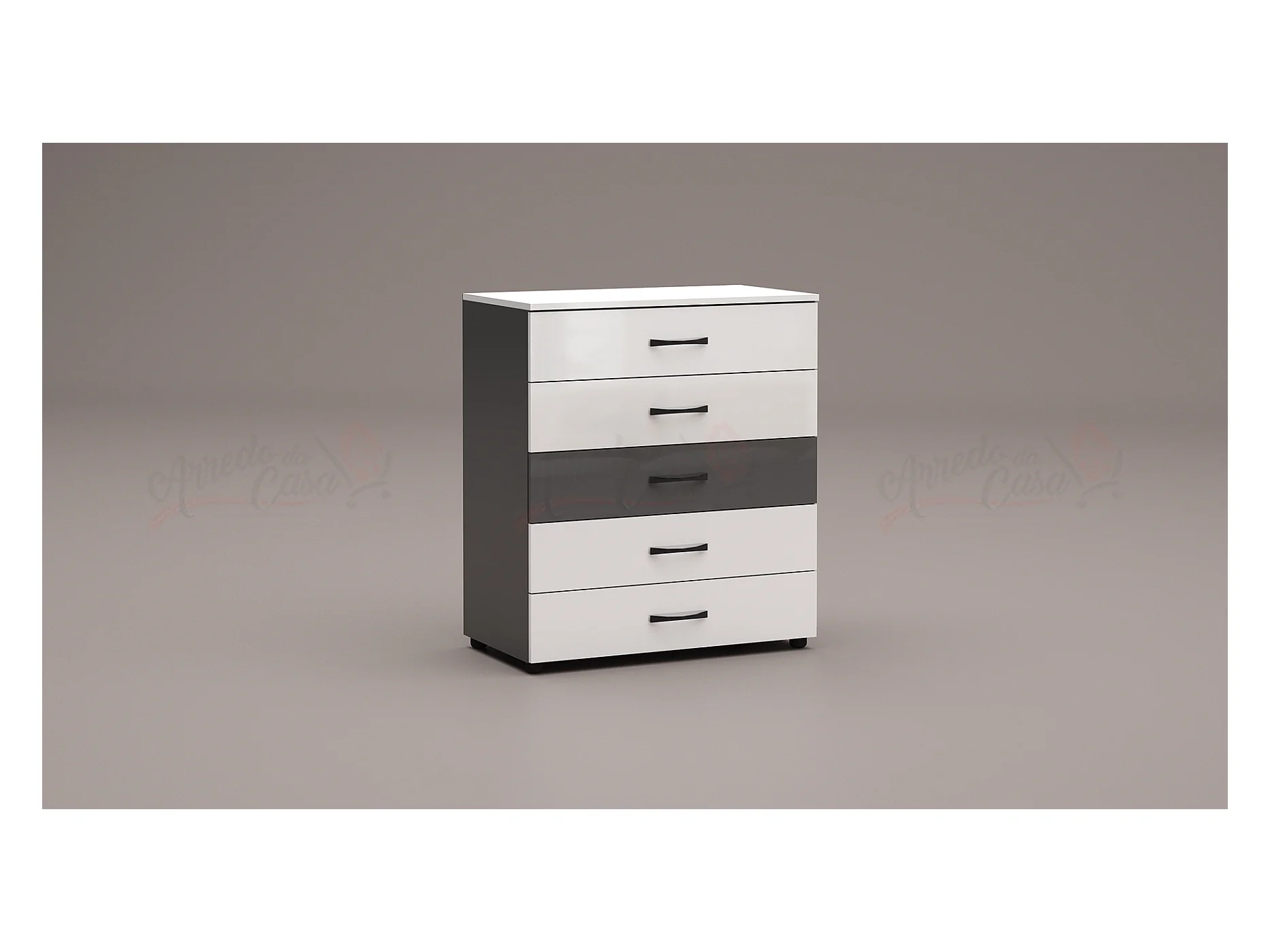comò da camera da notte design moderno con cinque cassetti CG5 80x91 bianco e grigio lucido