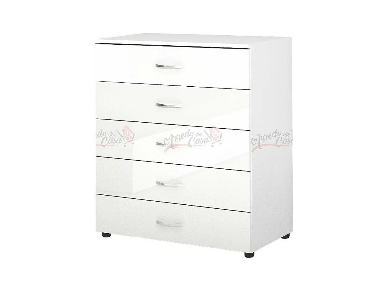 Cassettiera Berna Bianco con 4 cassetti, Realizzato in Pino Massiccio