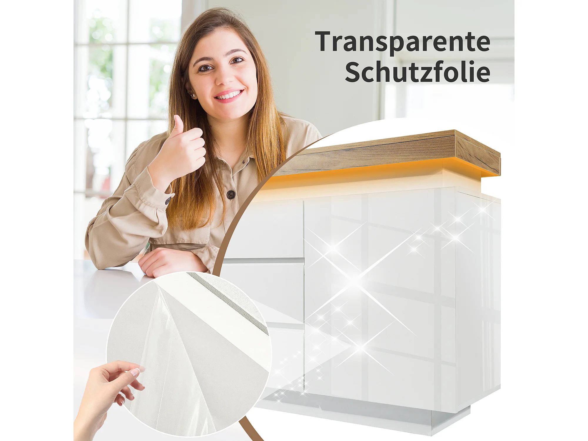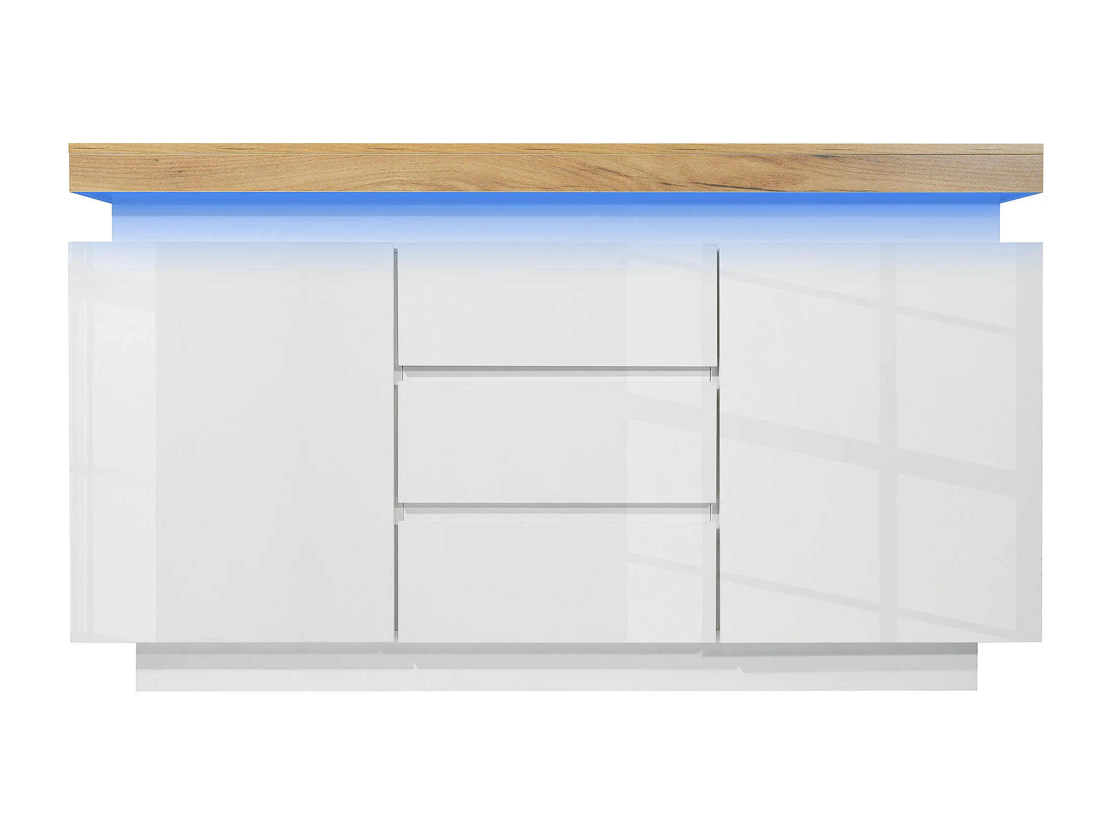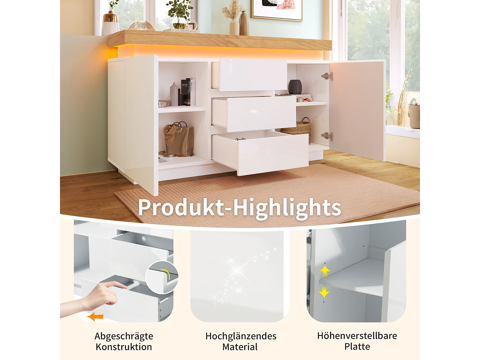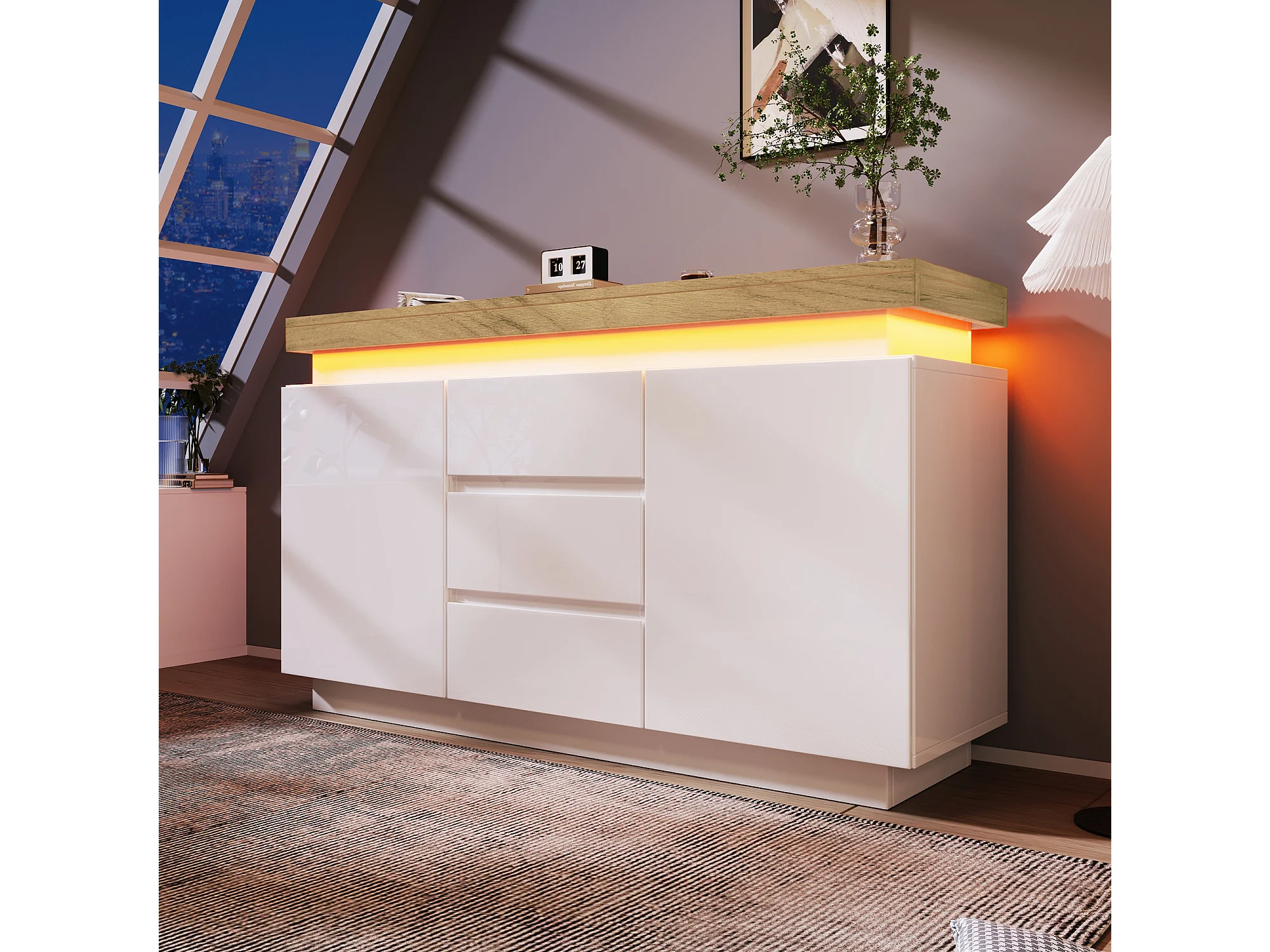 Cassettiera moderna con 2 ante e 3 cassetti, LED controllabile tramite app, mobile multifunzionale per soggiorno e camera da letto, bianco, (81x140x39 cm)