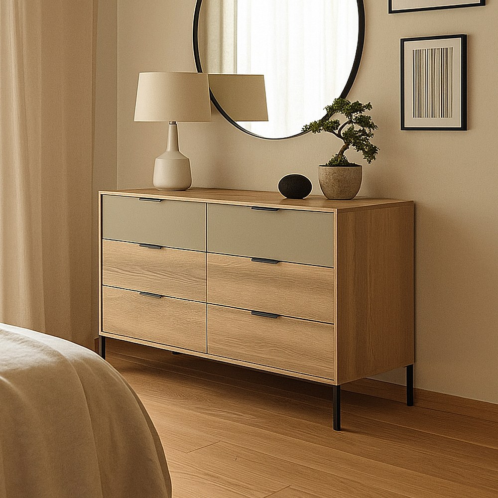 Comò a 6 Cassetti SucceBuy, Legno, Sistema Scorrevole/Antiribaltamento, Stile Moderno, Organizer per Armadio, Soggiorno/Camera da Letto/Ingresso, Legno Chiaro