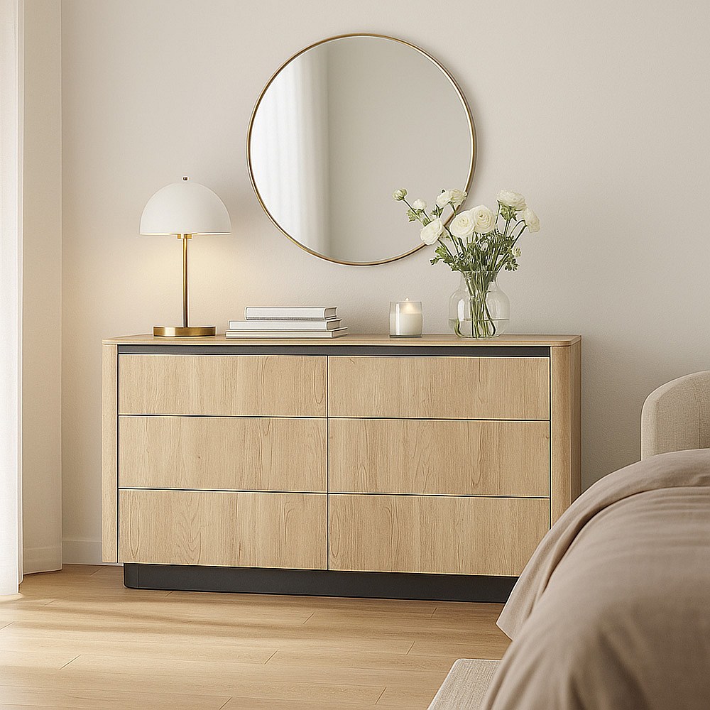 Cassettiera moderna 163,2x83,2 cm con 6 cassetti in rovere chiaro CLK15