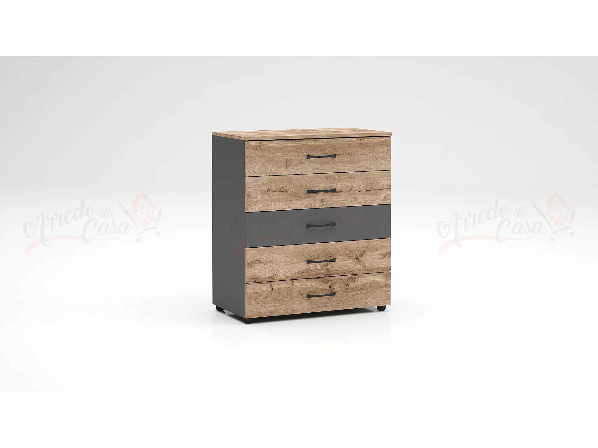 comò da camera da notte design moderno con cinque cassetti CG5 80x91 rovere e antracite
