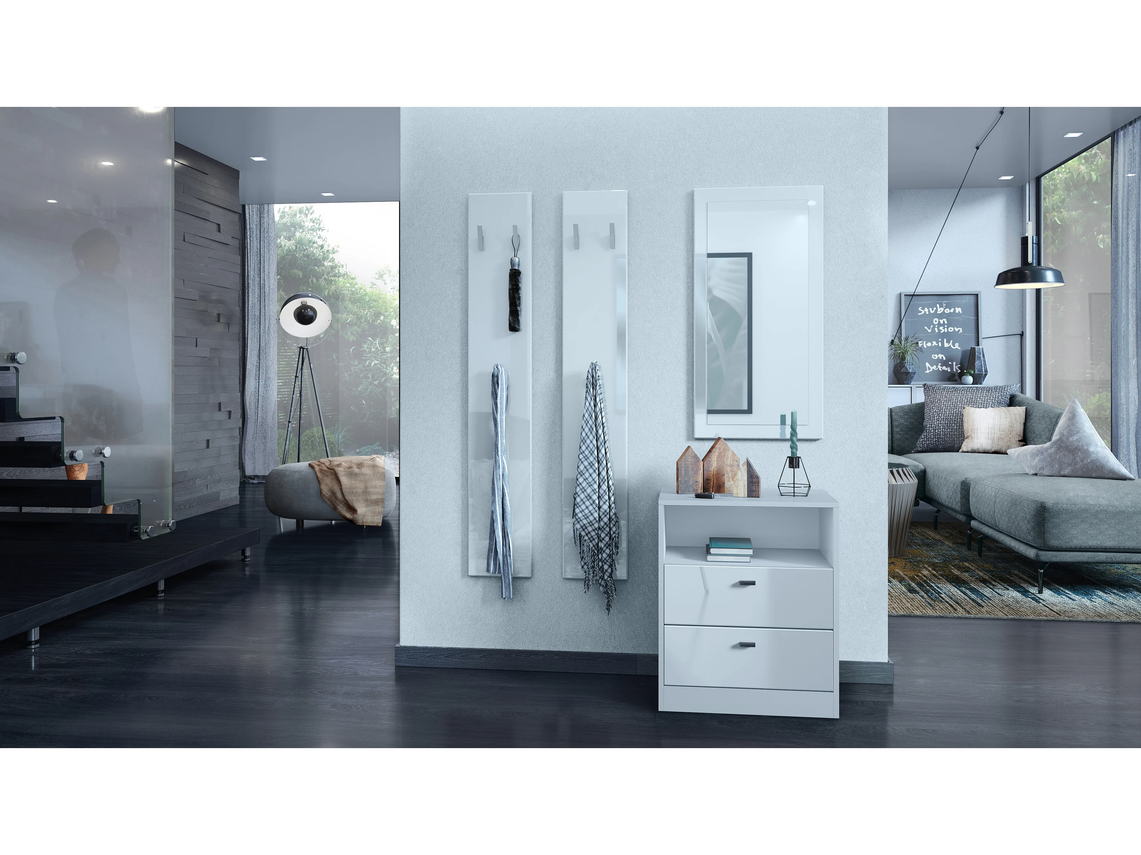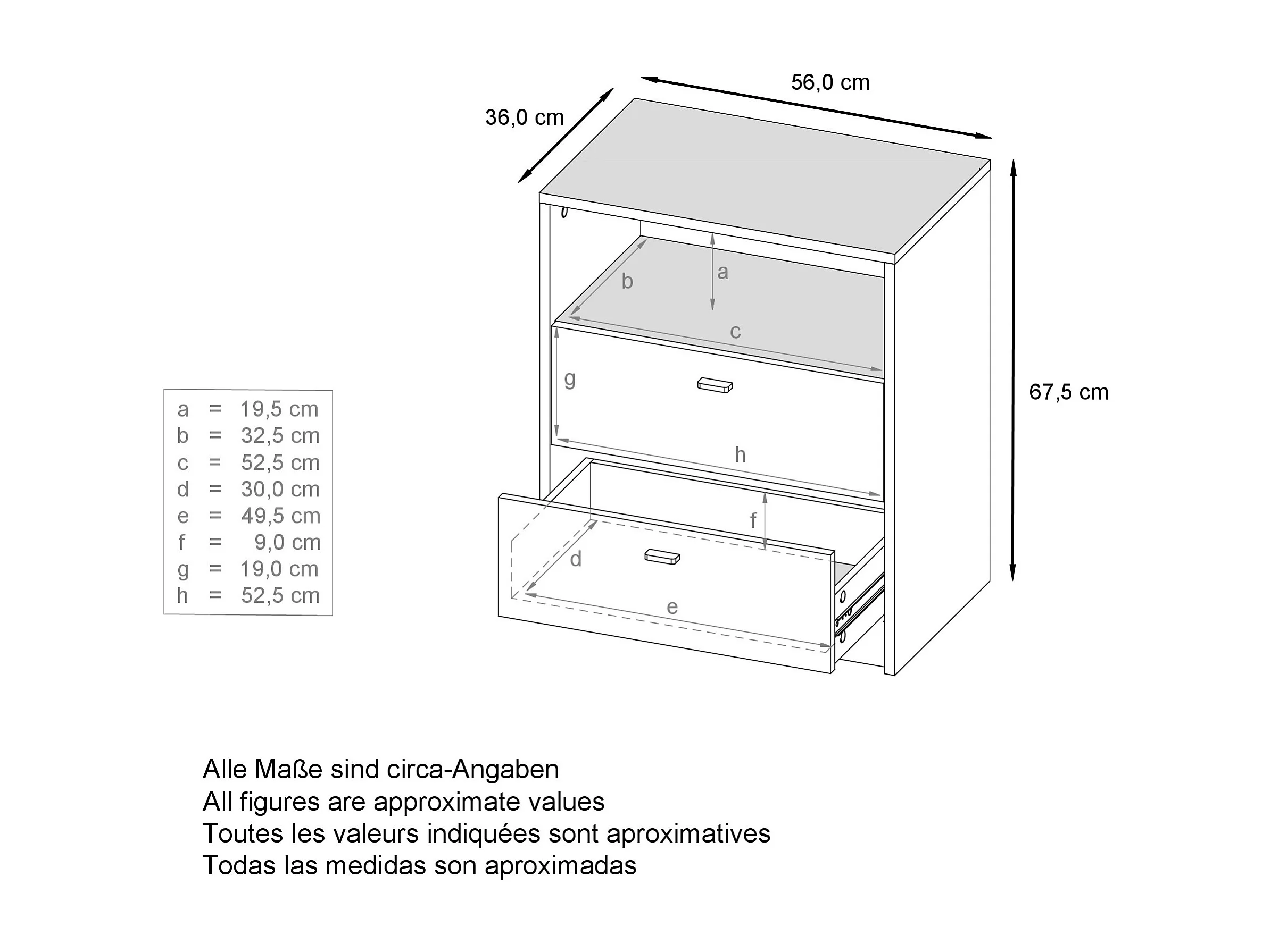 Cassettiera Pino V2, Credenza con 3 cassetti e 1 vano a giorno, antracite/bianco lucido senza LED (56 x 86,5 x 36 cm)
