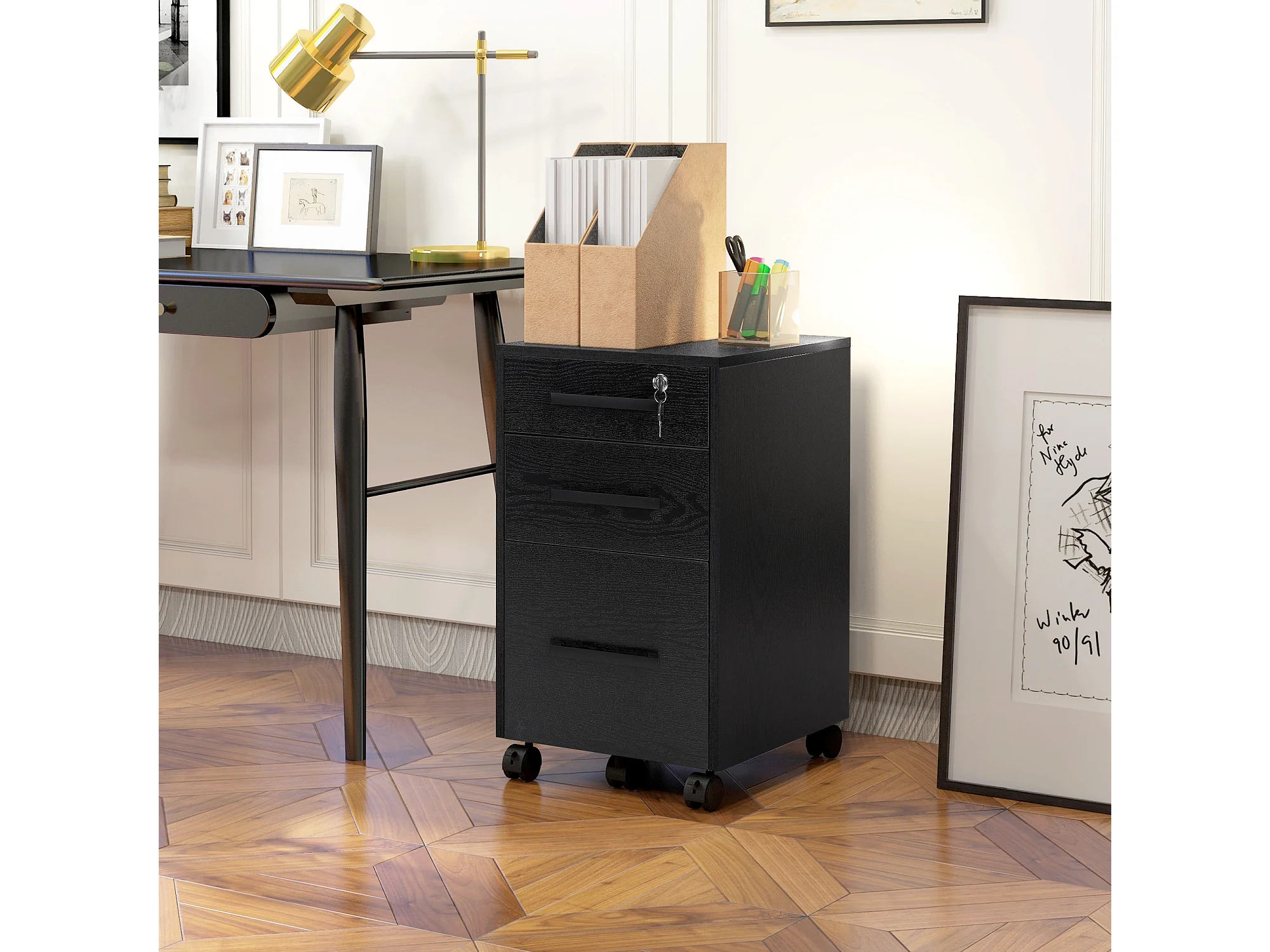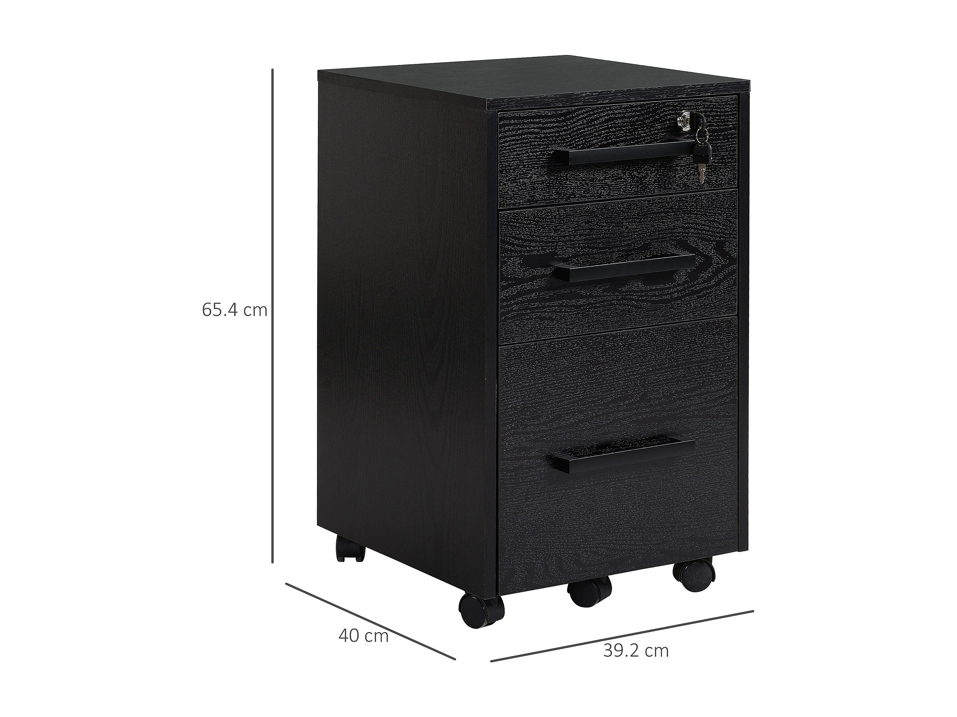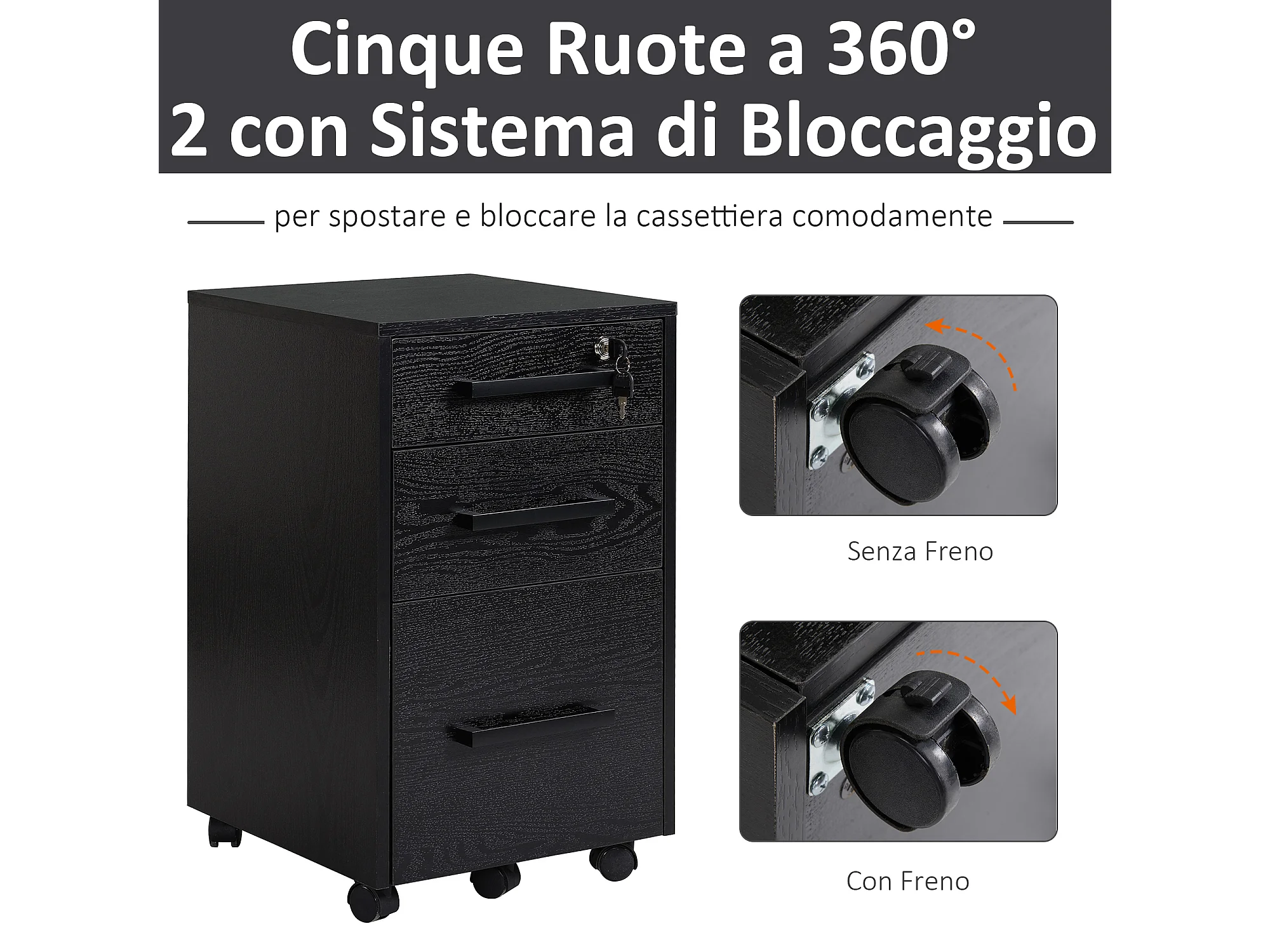 Cassettiera portadocumenti a 3 cassetti con chiavi e 5 ruote nero
