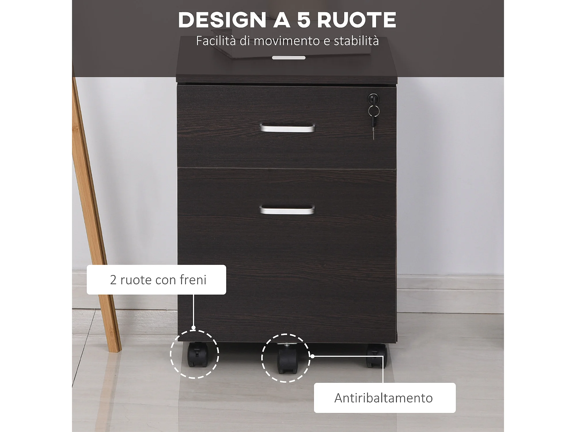 Cassettiera portadocumenti per ufficio con 2 cassetti e serratura