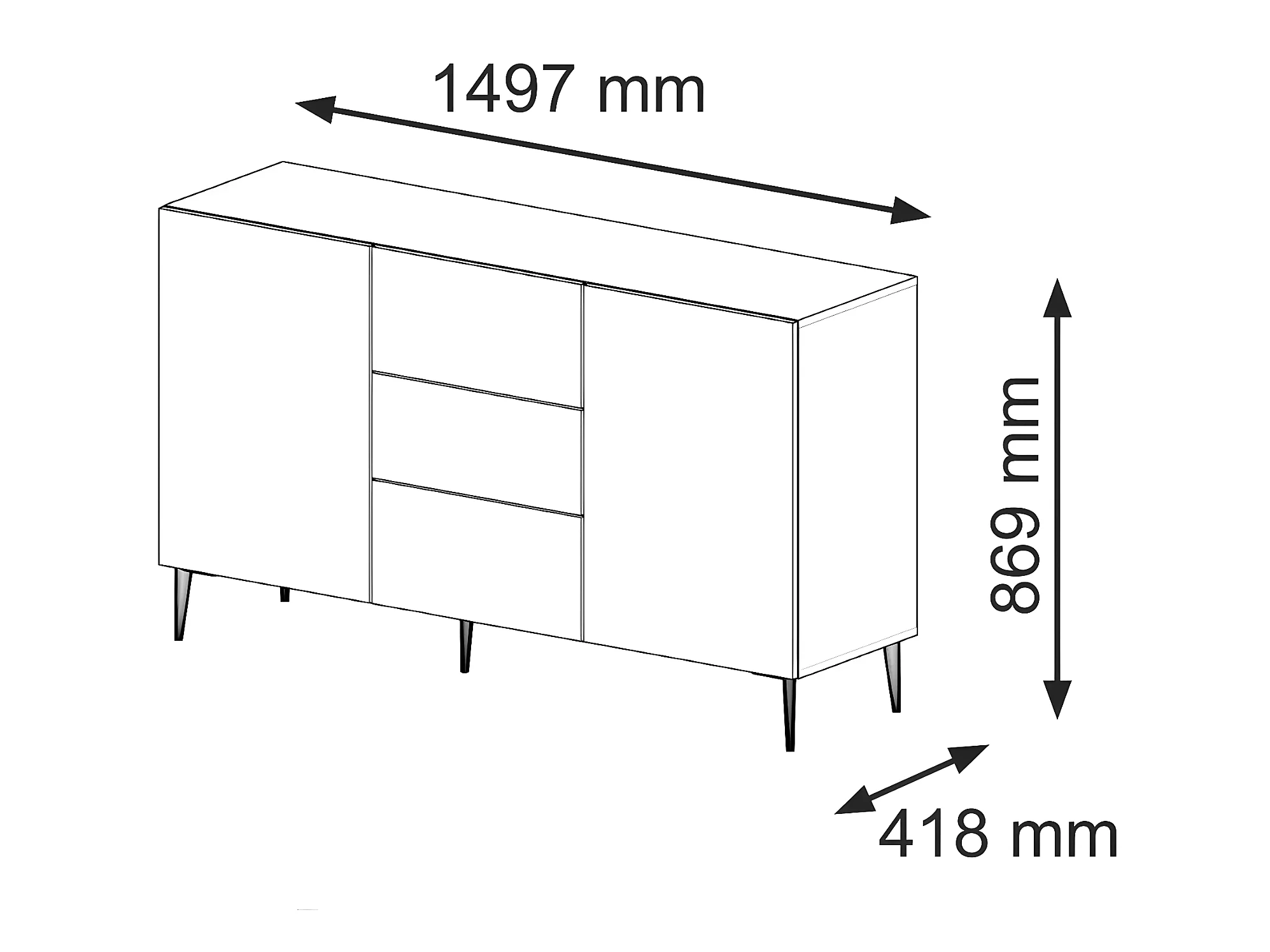 Cassettiera RavennaB 150x42x87 Crema & Nero & Oro