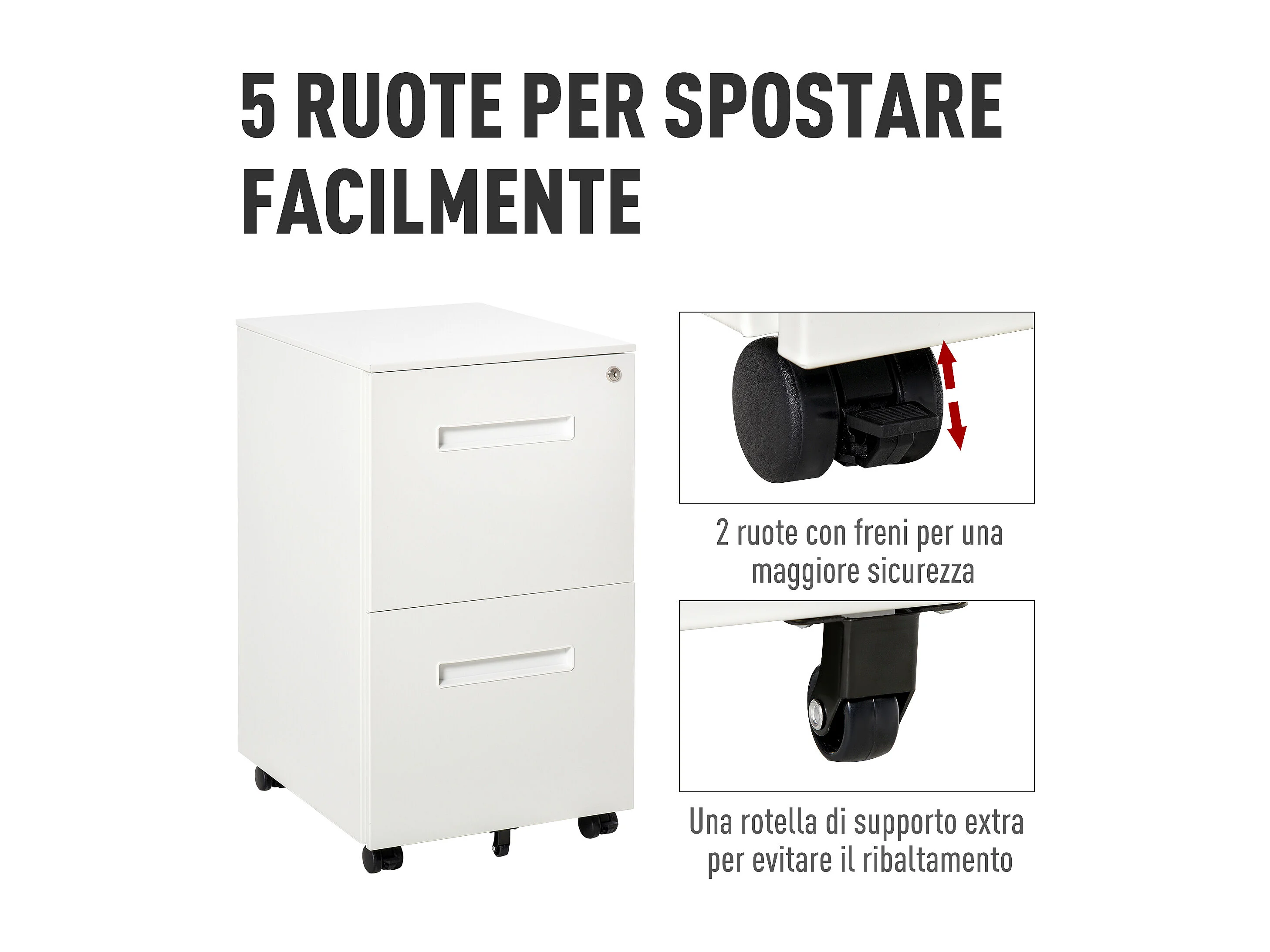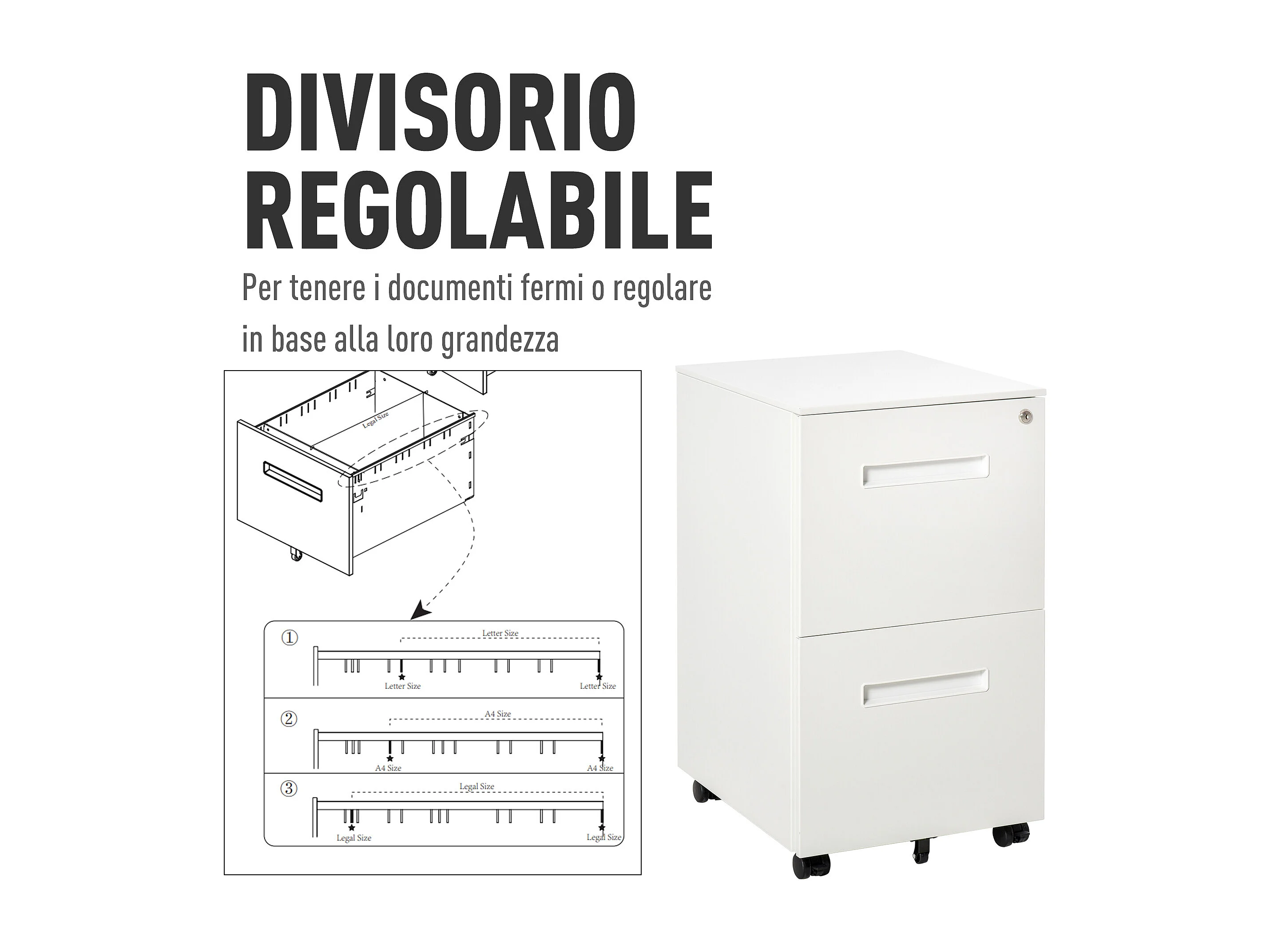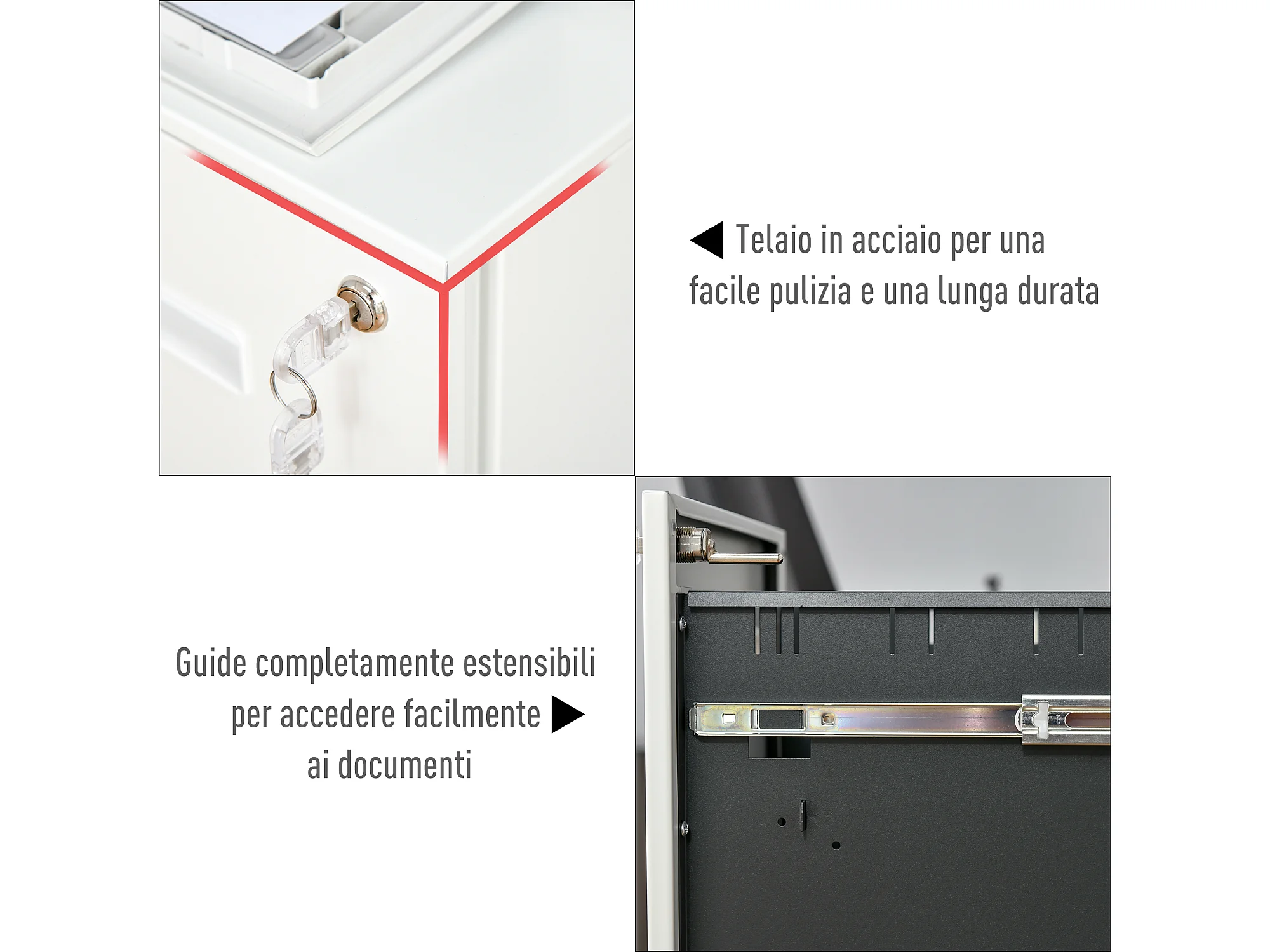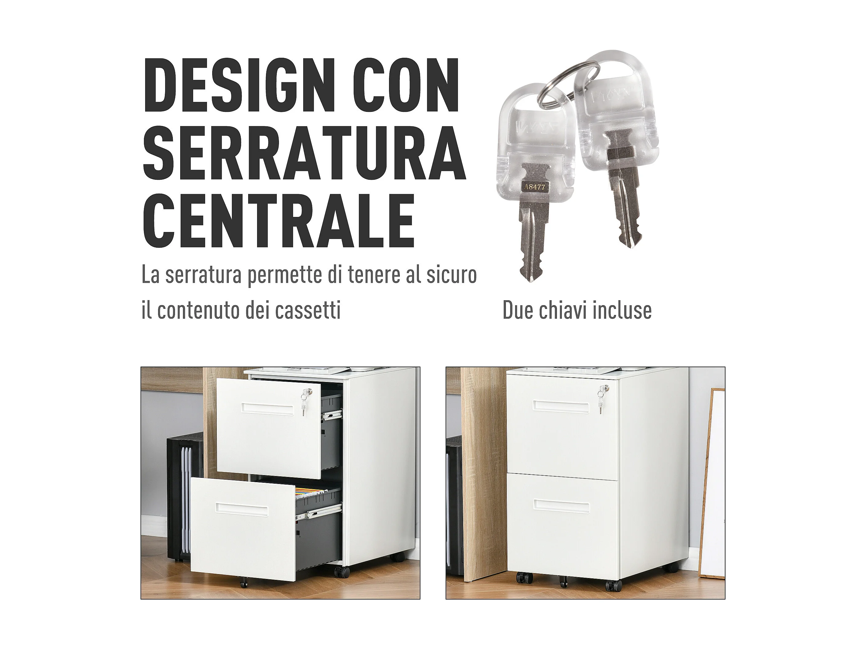 Cassettiera schedario 2 cassetti con serratura 39x48x67cm