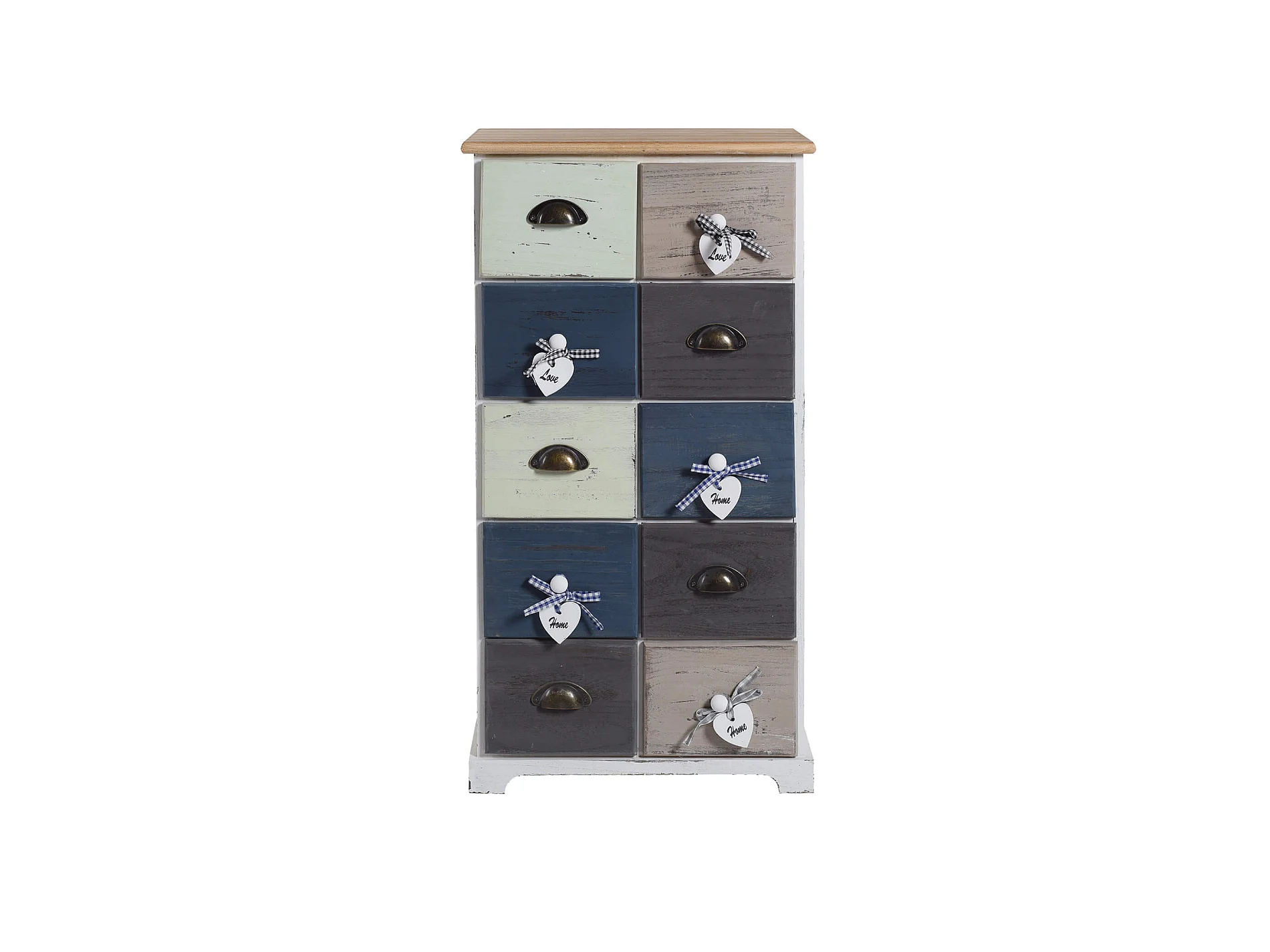 Cassettiera Shabby Vintage Beige Blu Marrone 10 Cassetti 88x48x30