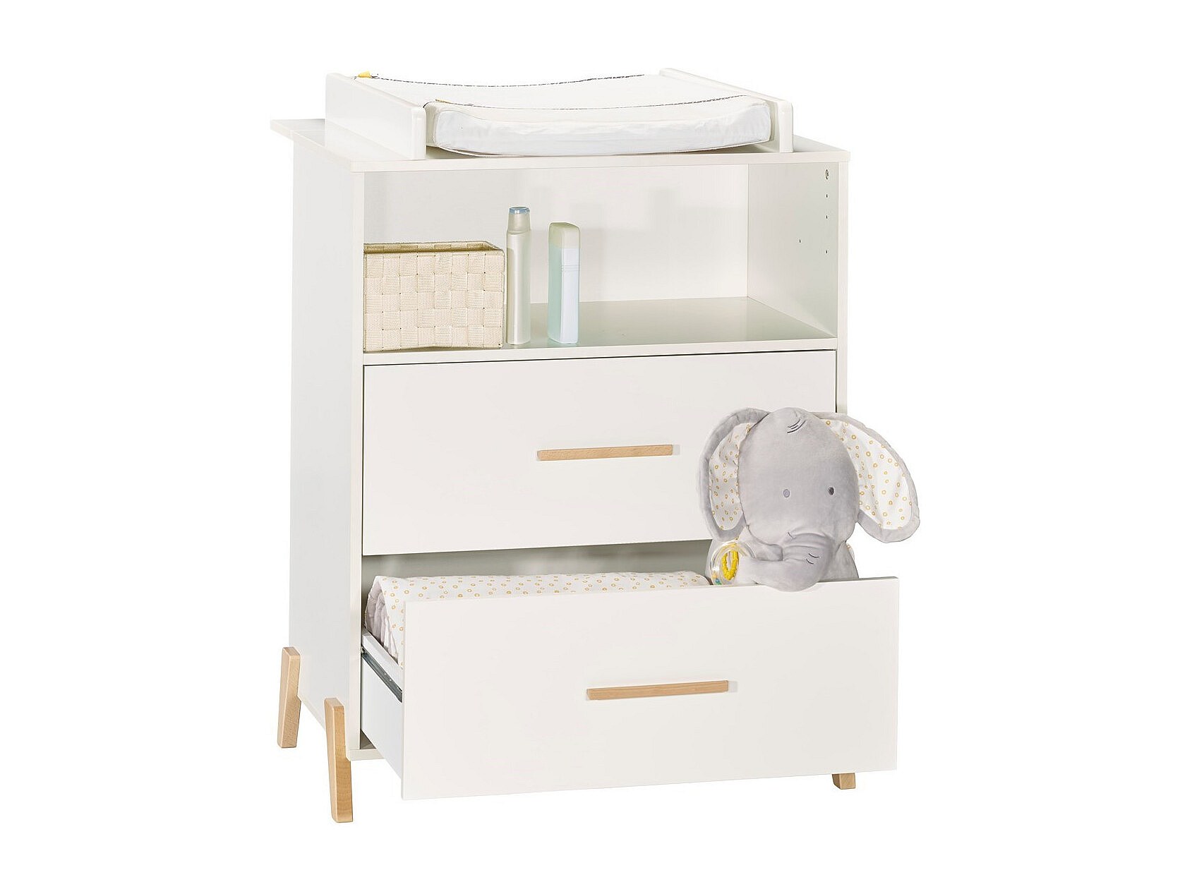Comoda per bambini robusta con fasciatoio integrato colore rovere chiaro collezione DANAÉ.