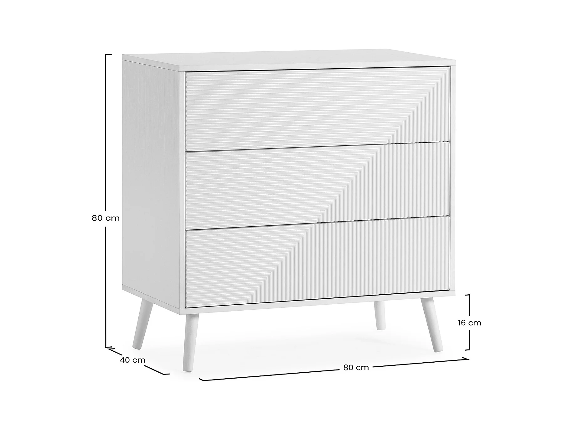 Cassettiera Baltimora, Settimanale a 3 cassetti, Mobile Comò per camera da letto, Comò moderno, 80x40h80 cm, Bianco