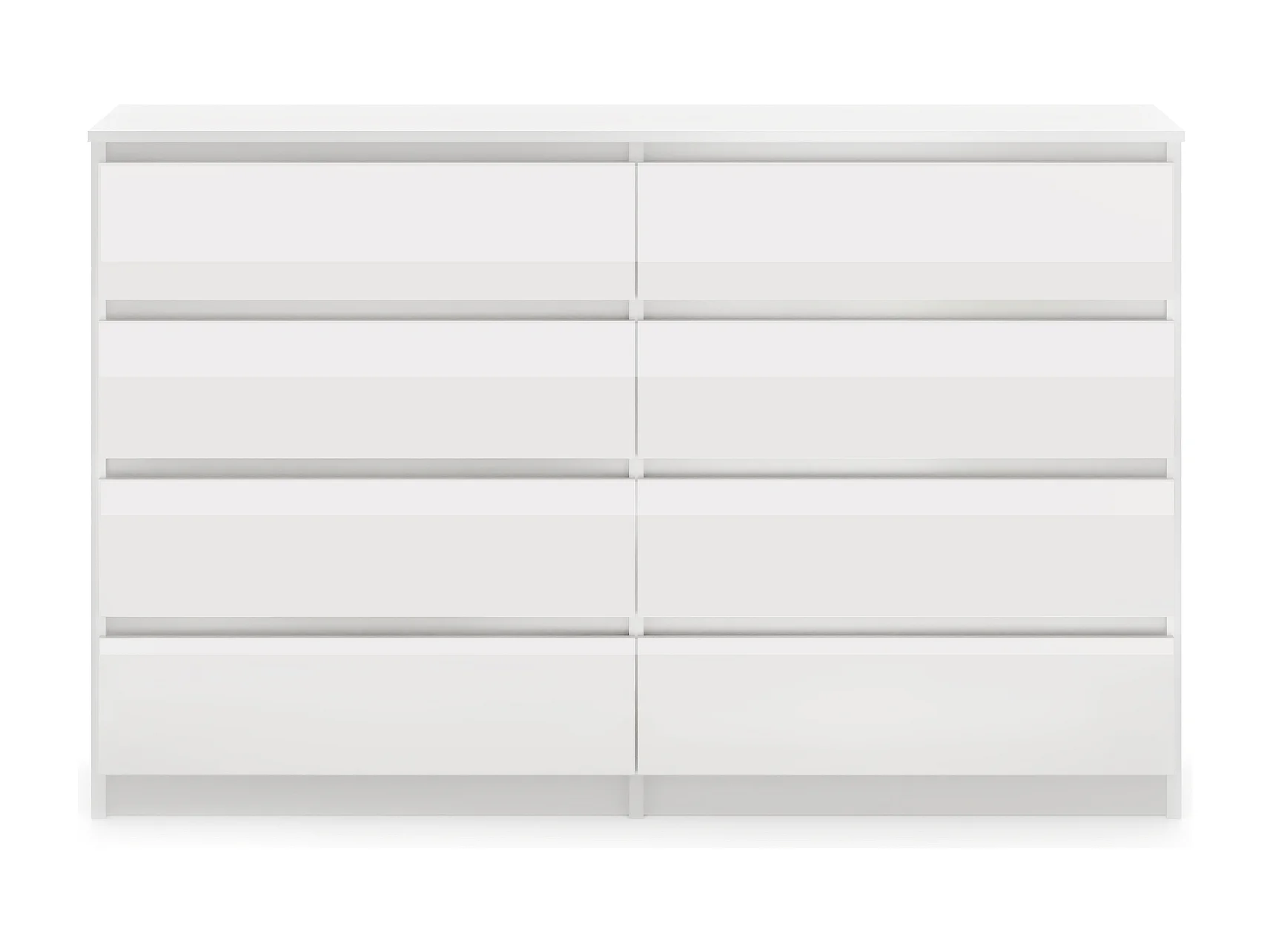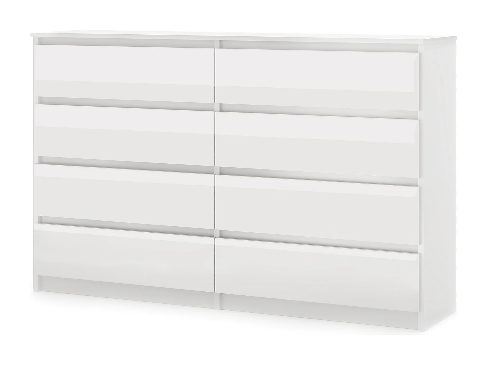 Cassetto semplice 140 cm bianco/bianco lucido con 8 cassetti
