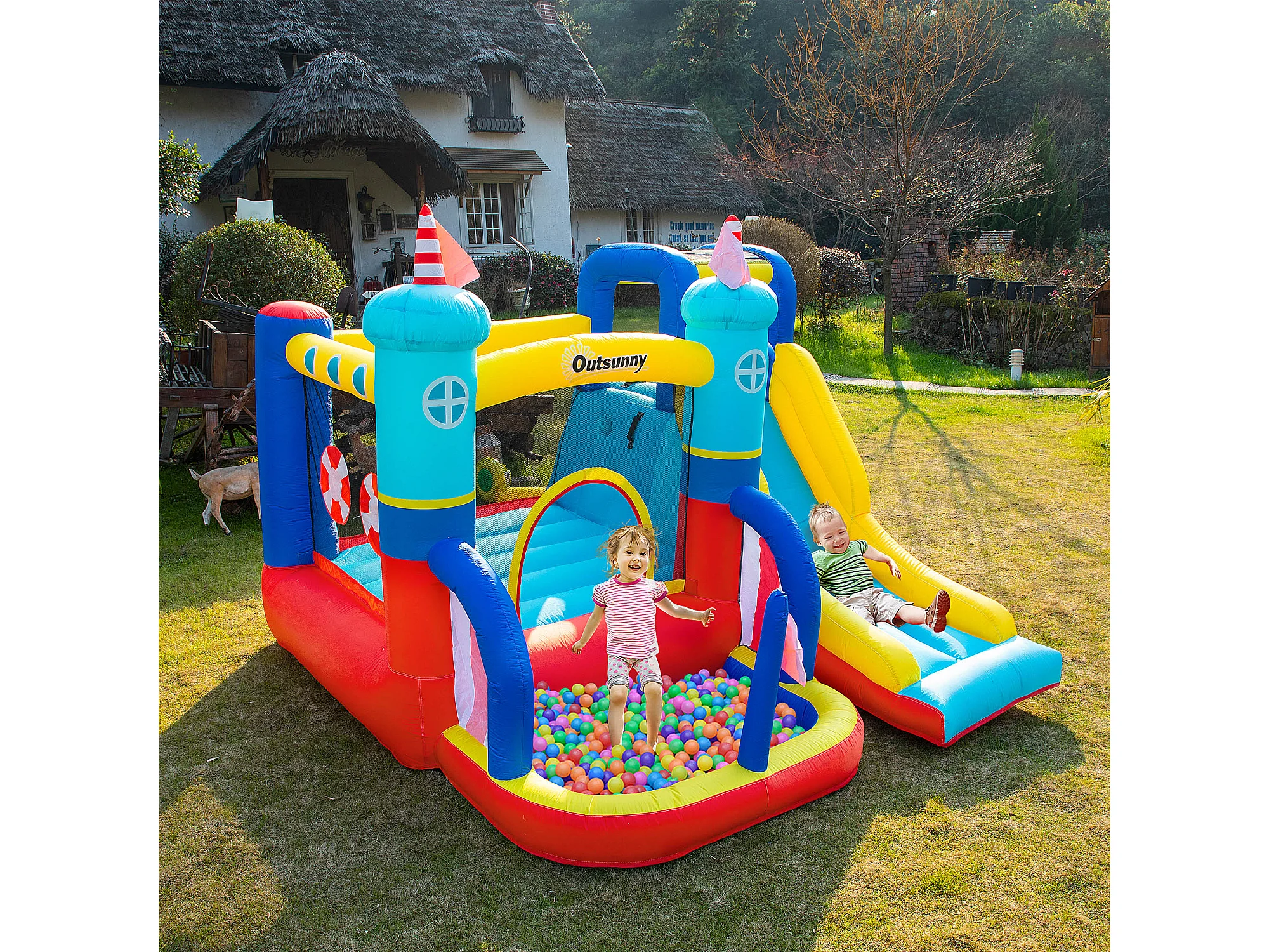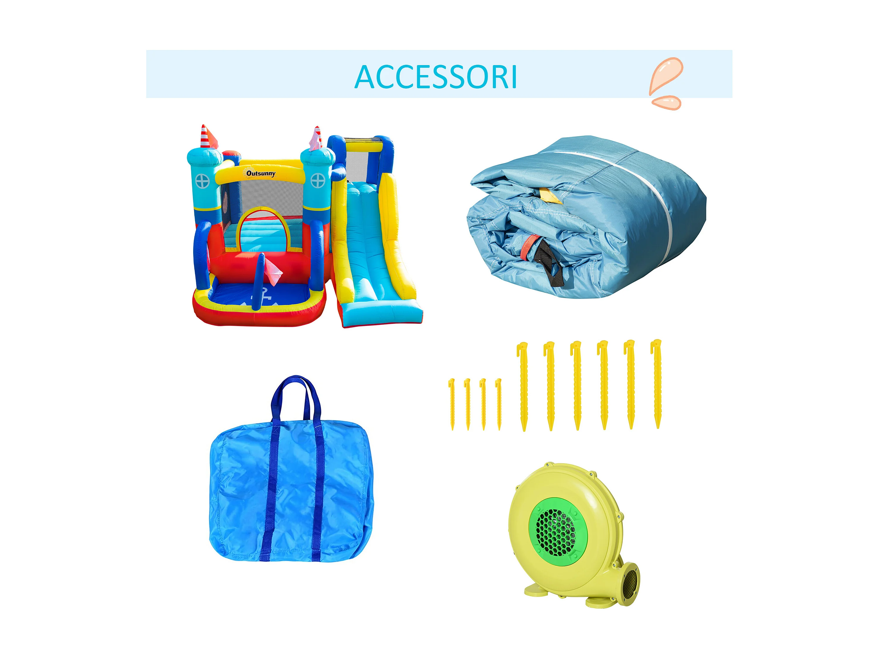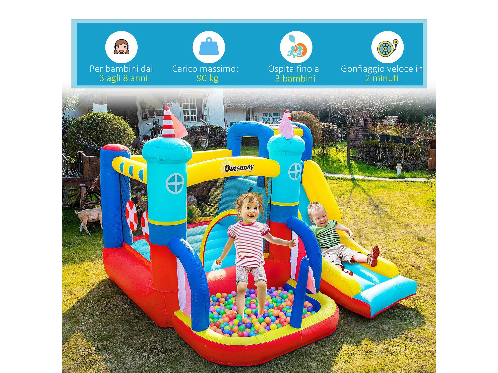 Castello gonfiabile da bambini 3-8 anni 4 in 1 con gonfiatore