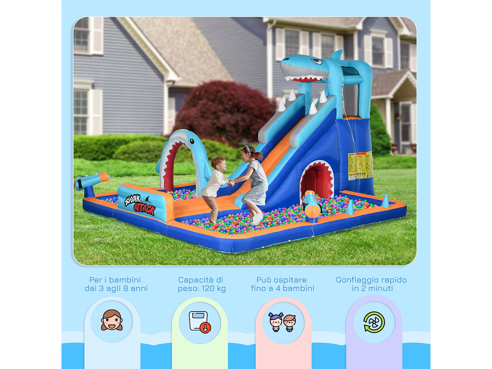 Castello gonfiabile per bambini 3-8 anni con gonfiatore incluso