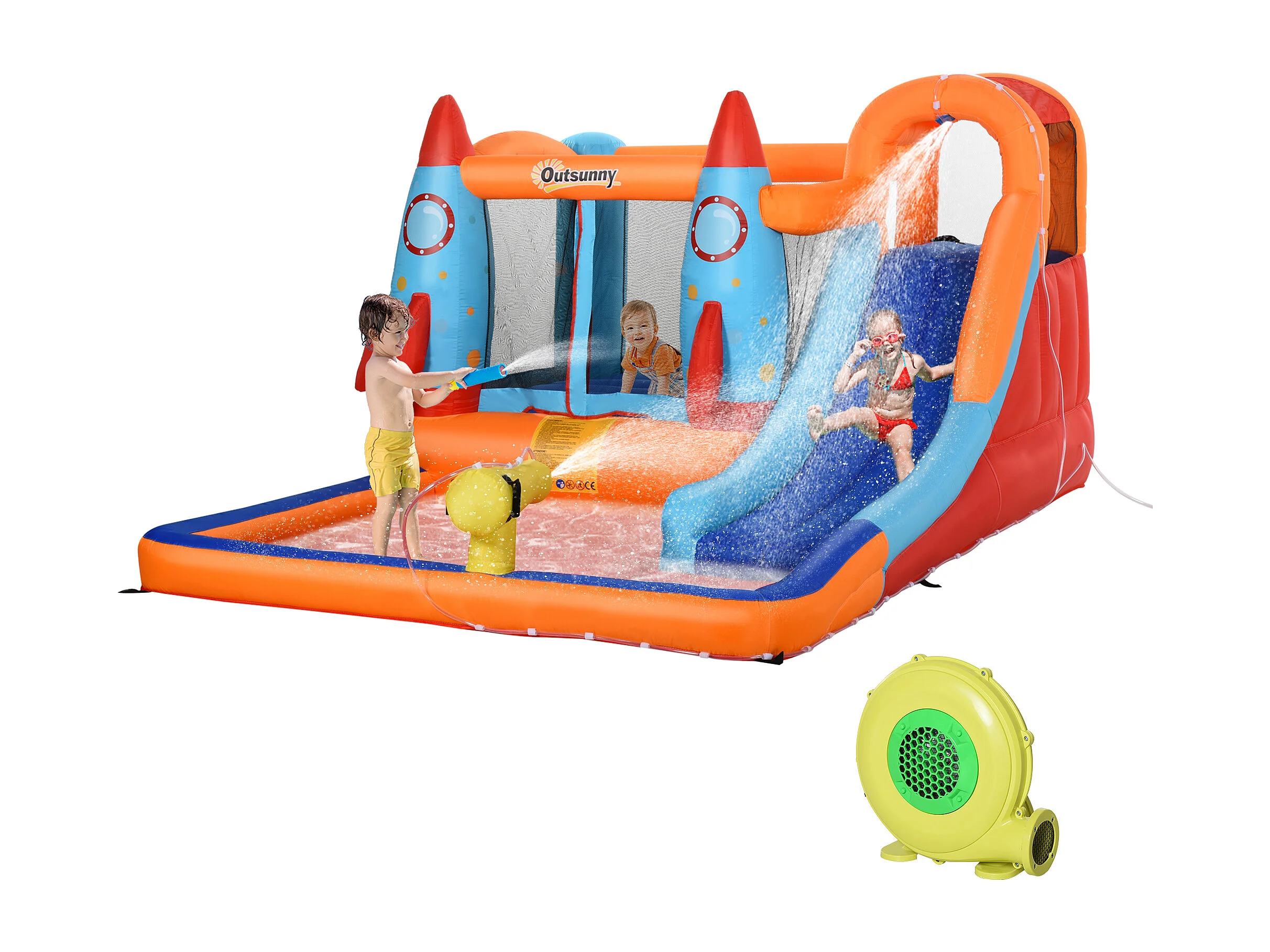 Castello gonfiabile per bambini con scivolo trampolino e gonfiatore