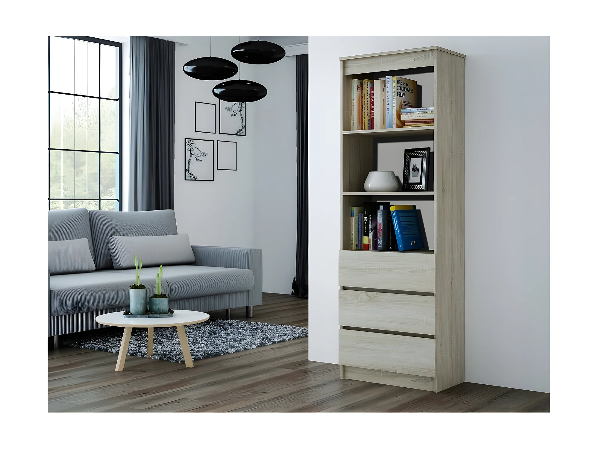 CATANIA - Libreria moderna 3 cassetti + 2 ripiani - 180x60x35 - Mobile contenitore - Librerie decorative - Aspetto legno