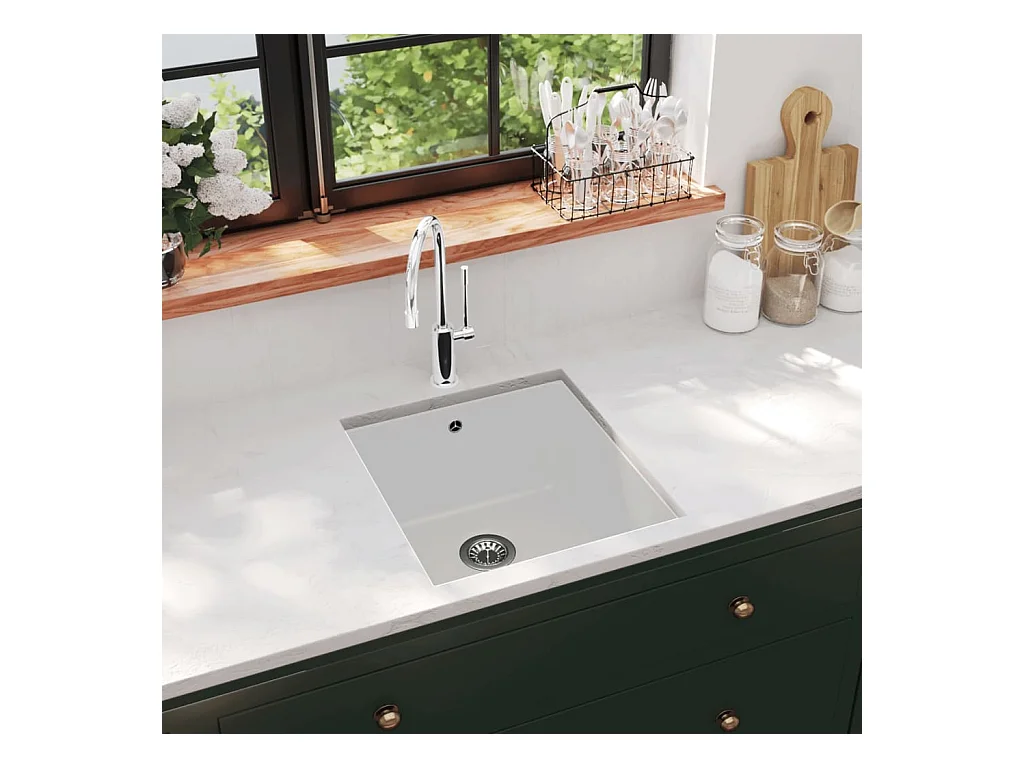 Herlaug Lavello da Cucina in Granito Vasca Singola Bianco