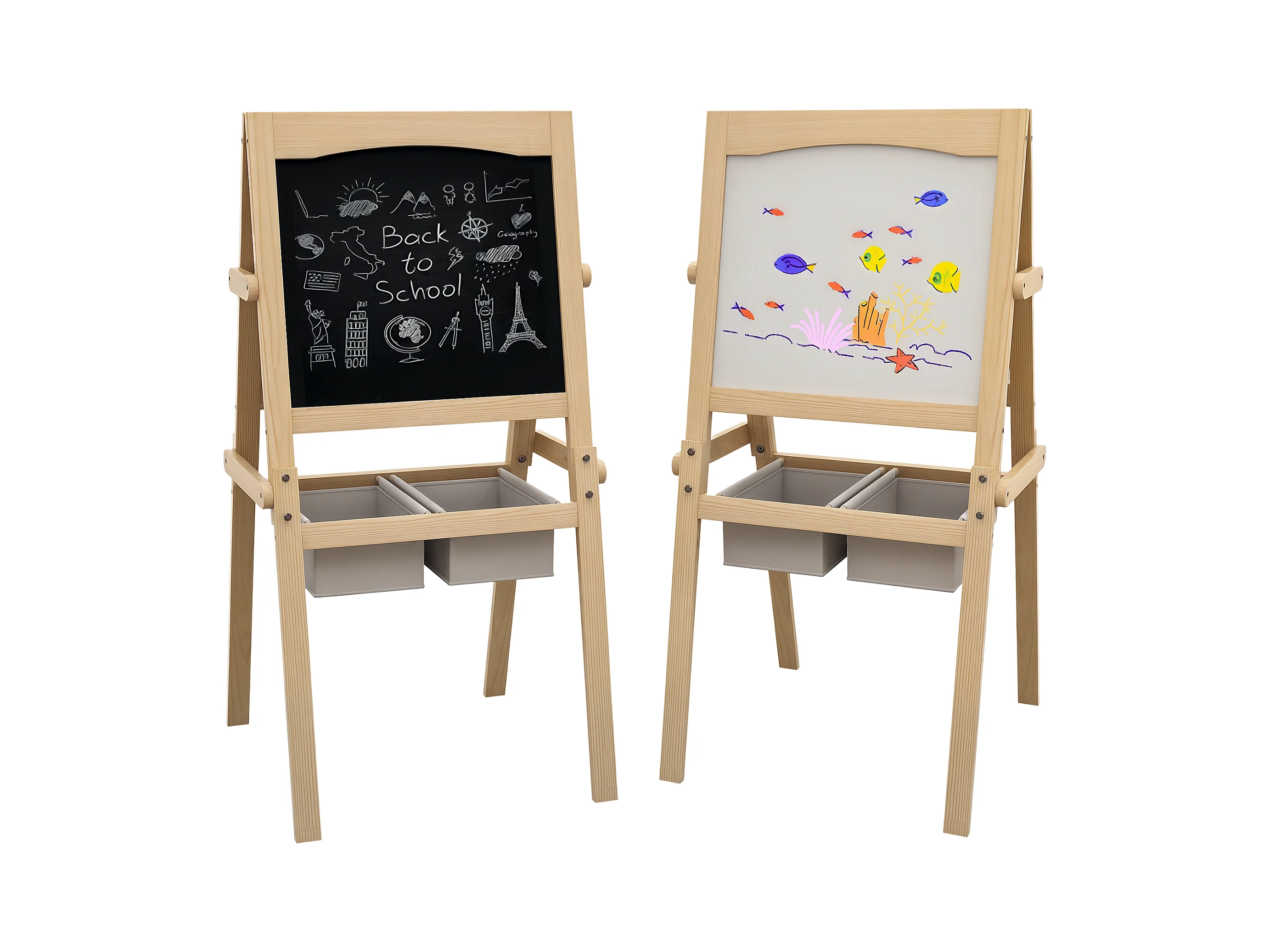 Cavalletto artistico per bambini con lavagna a 2 lati in legno rosa