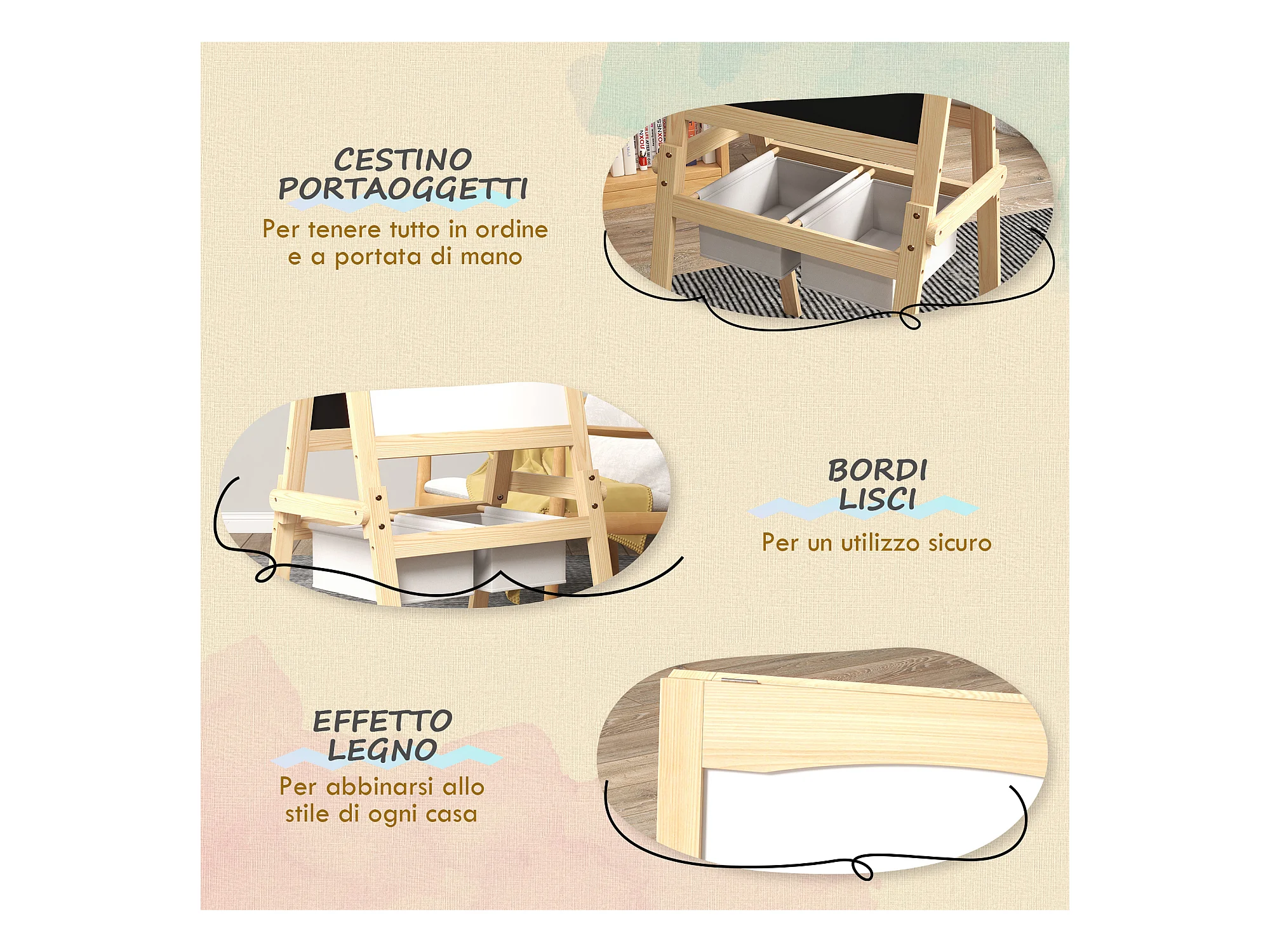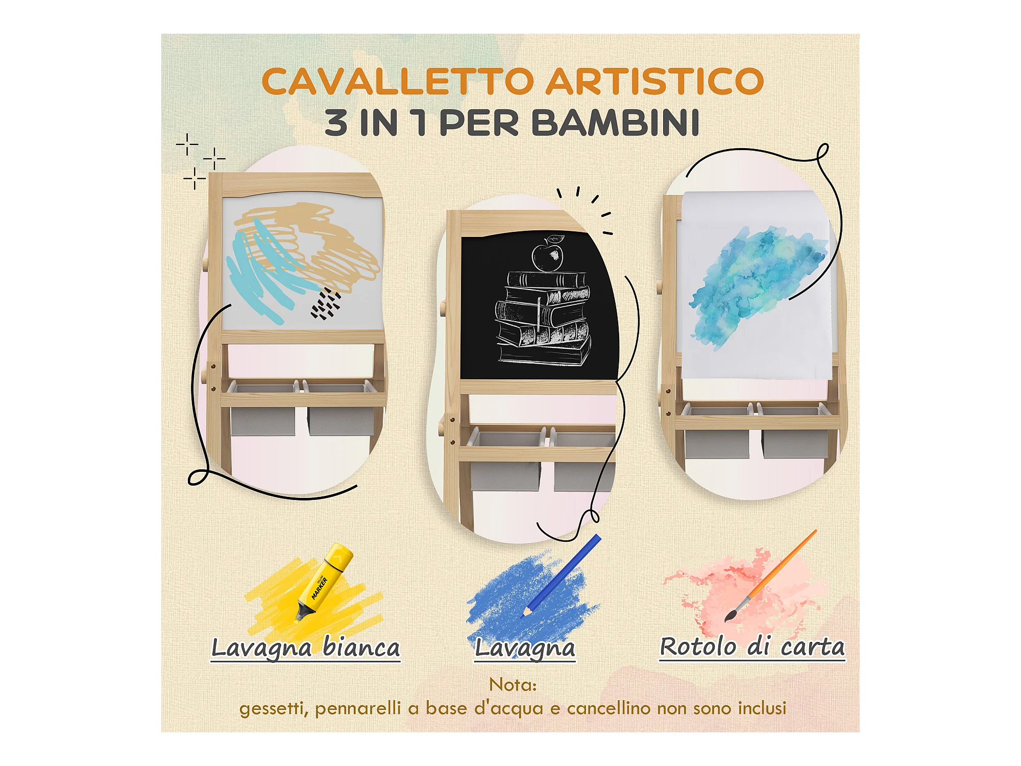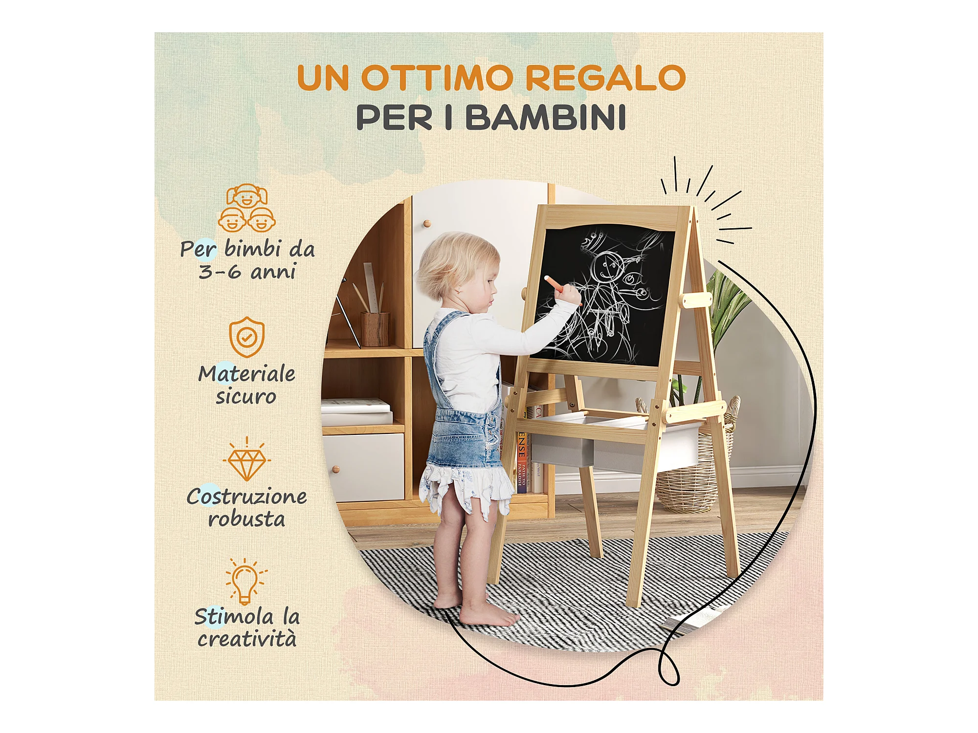 Cavalletto in legno 3in1 con lavagne per bambini 3-6 anni