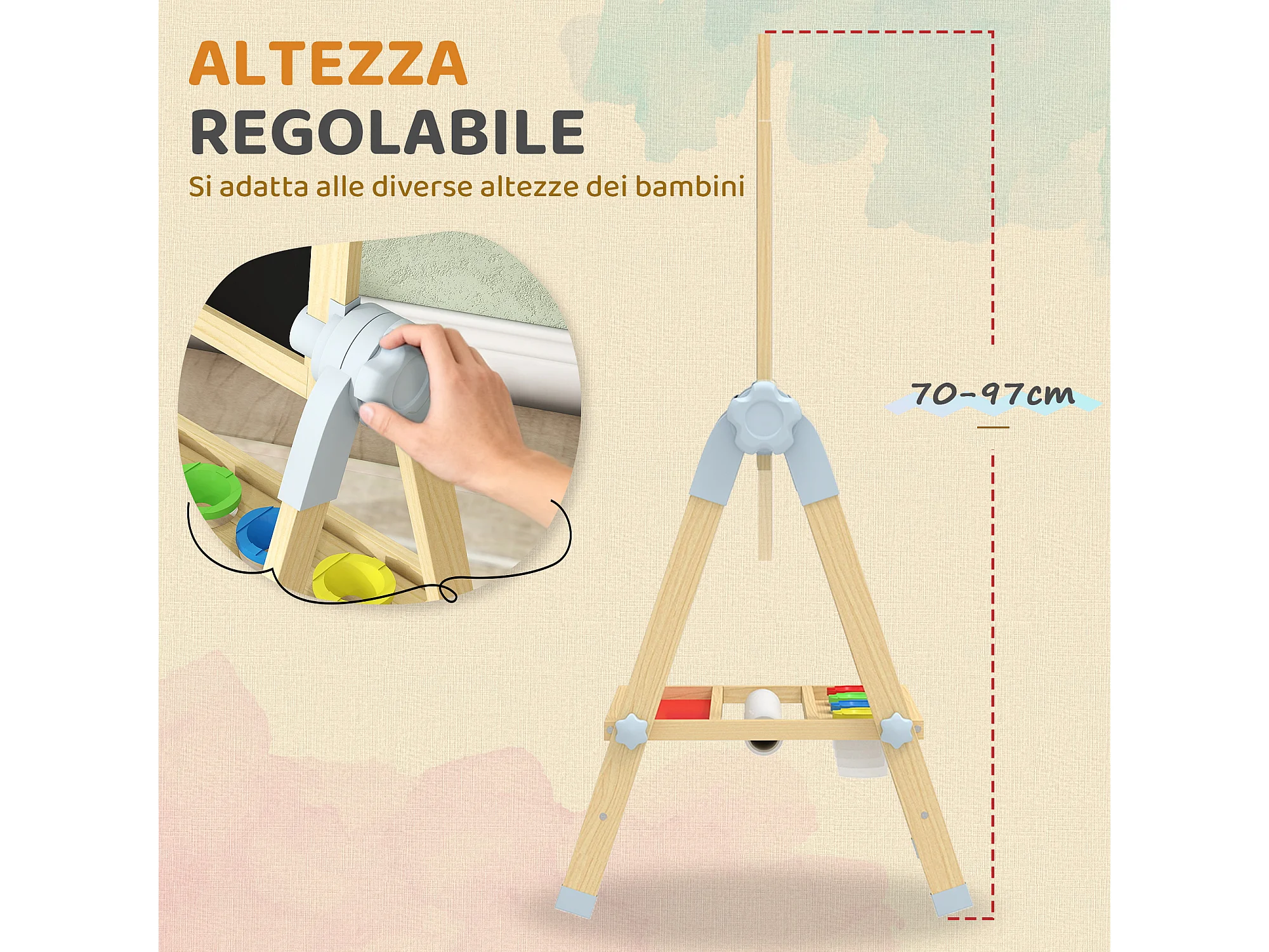 Cavalletto per bambini con doppia lavagna per gesso e pennarelli