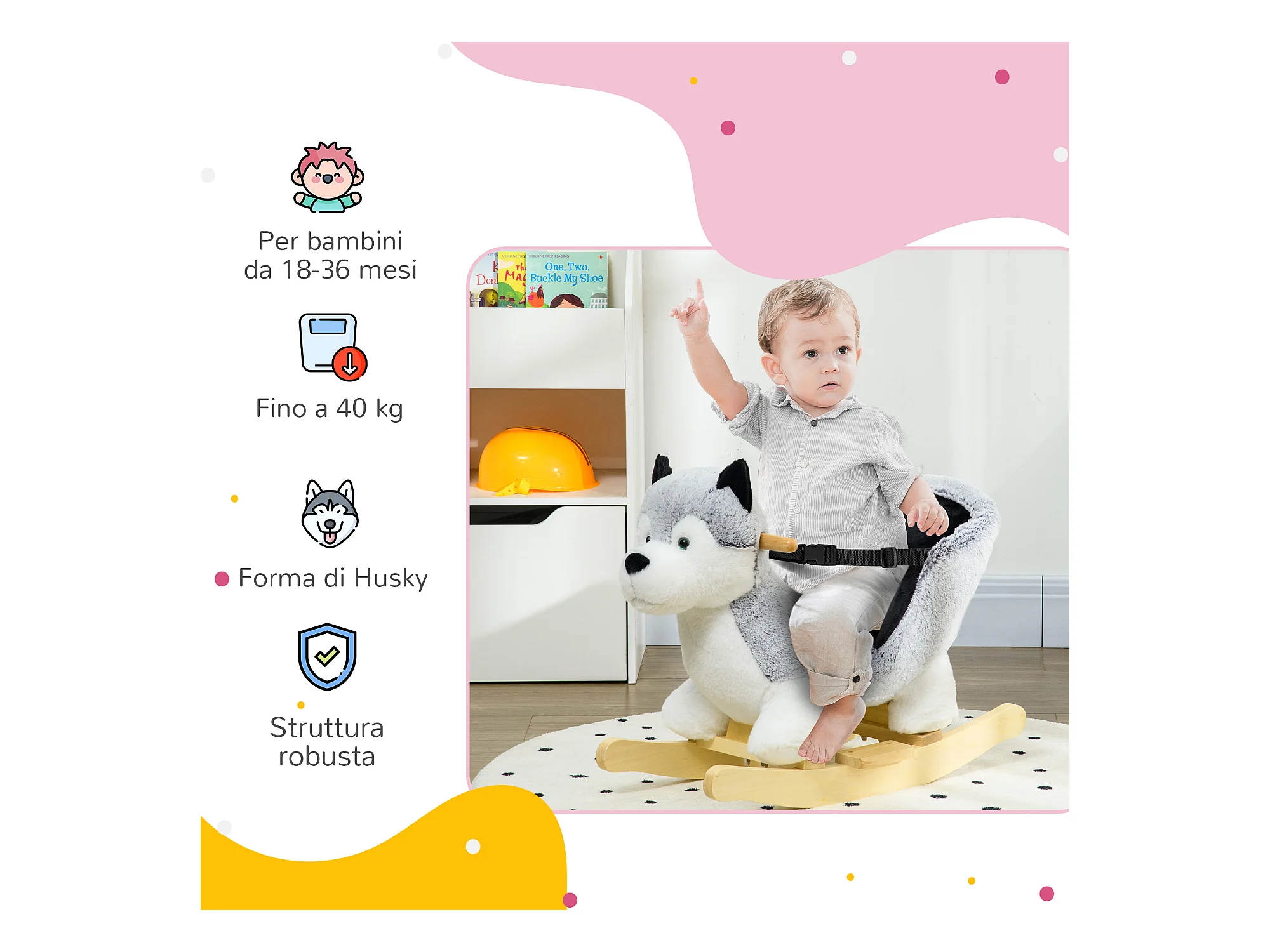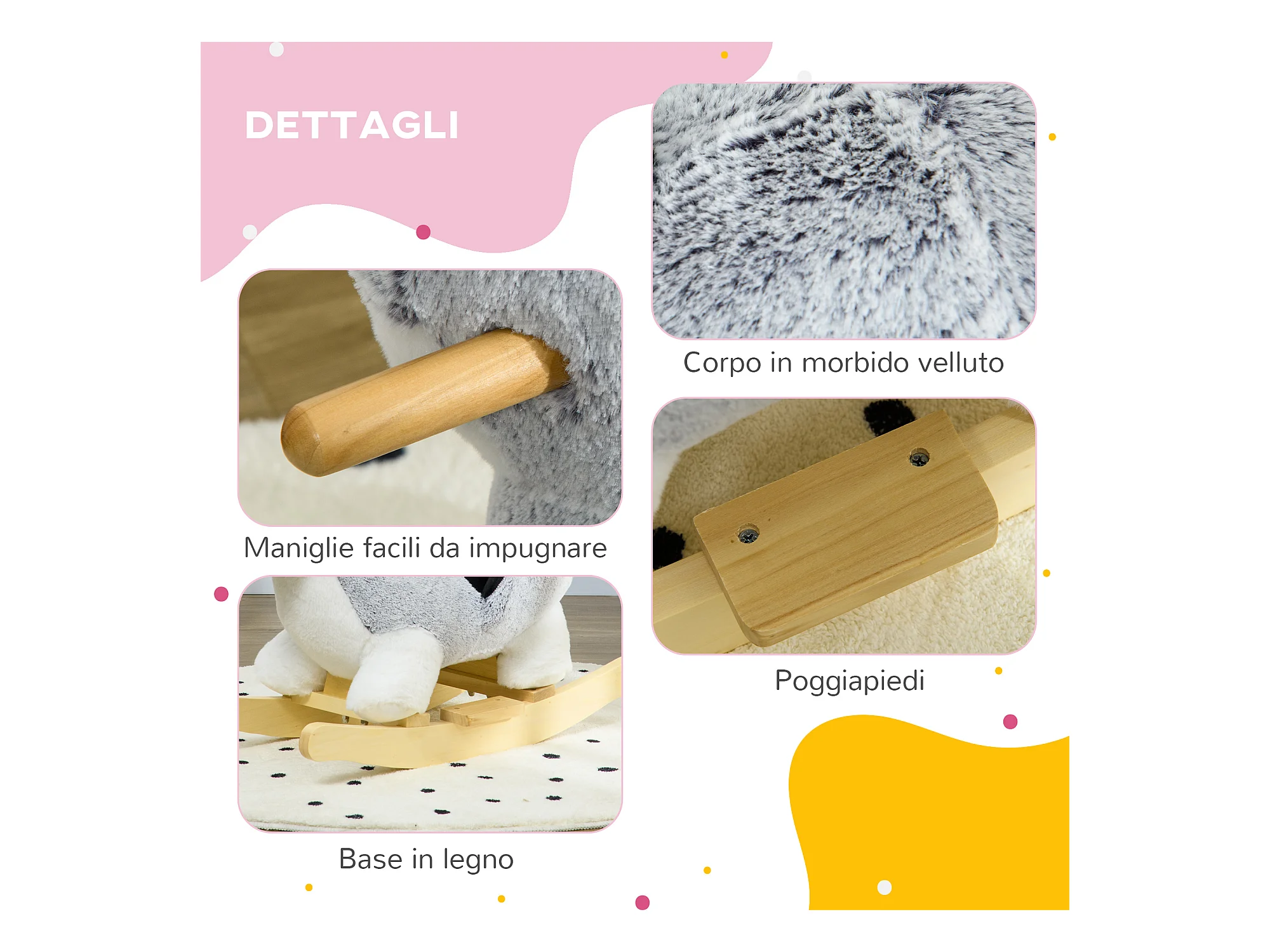 Cavallo a dondolo cane husky per bambini da 18-36 mesi grigio