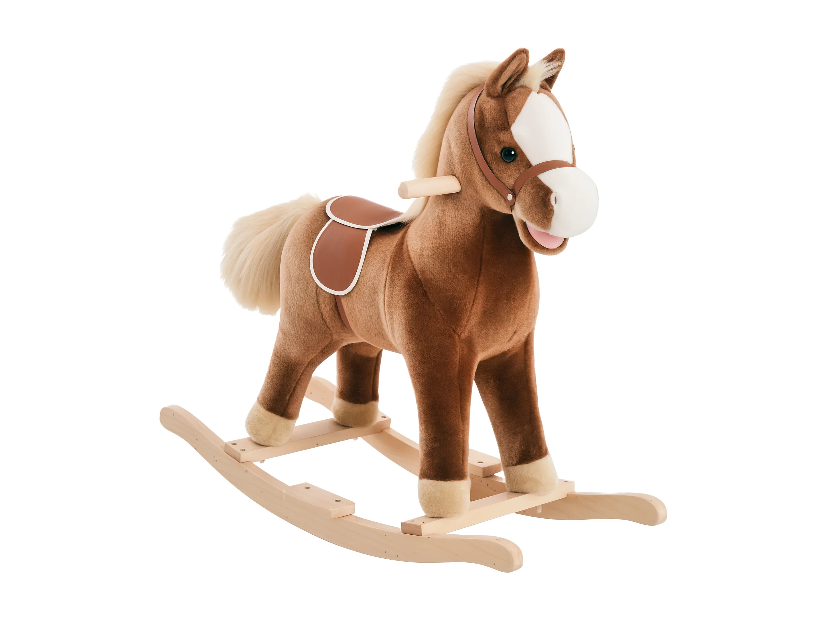 Cavallo a dondolo con suono per i bambini in legno marrone
