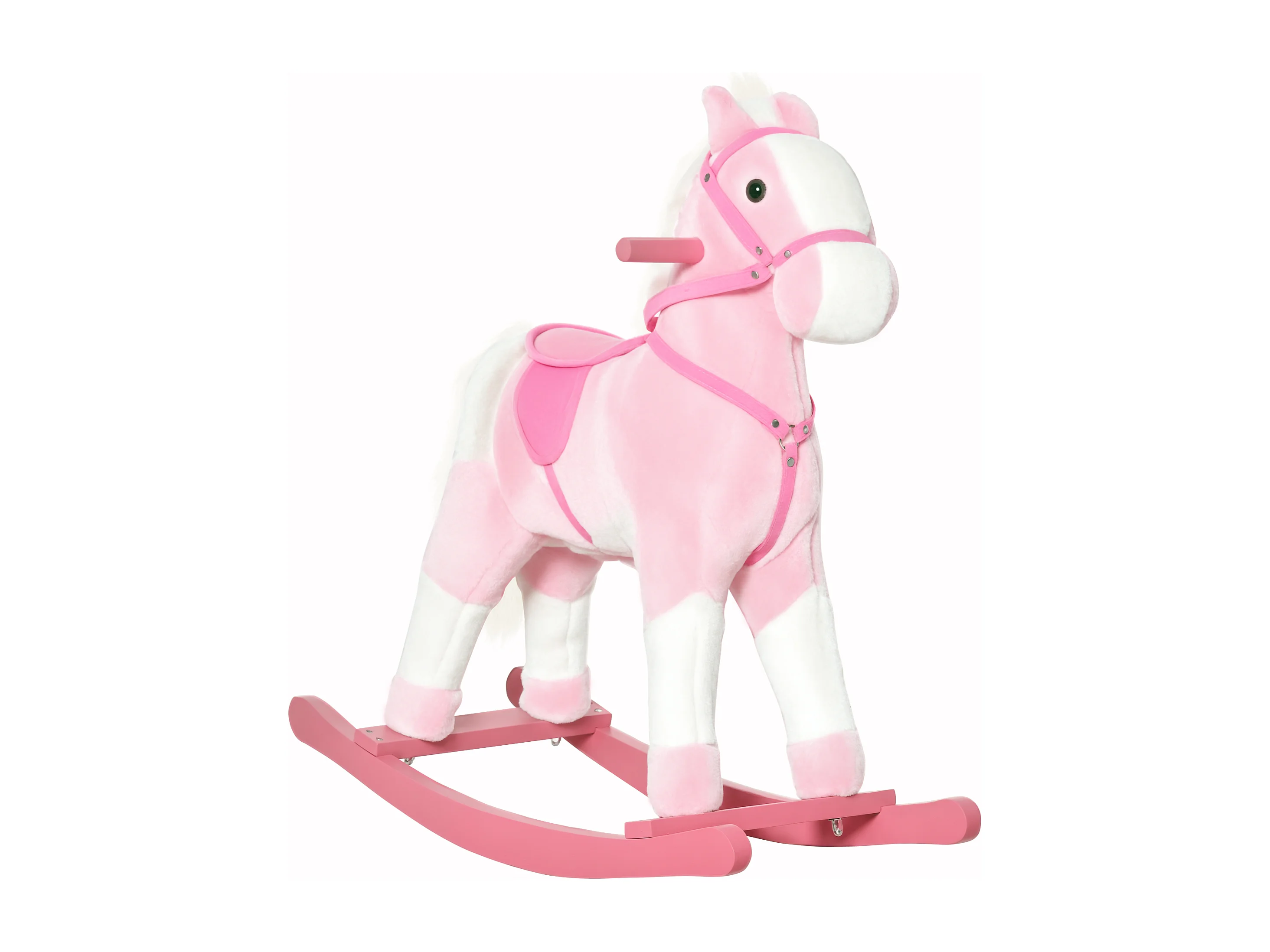 Cavallo a dondolo per bambini con suoni in legno di pioppo rosa bianco
