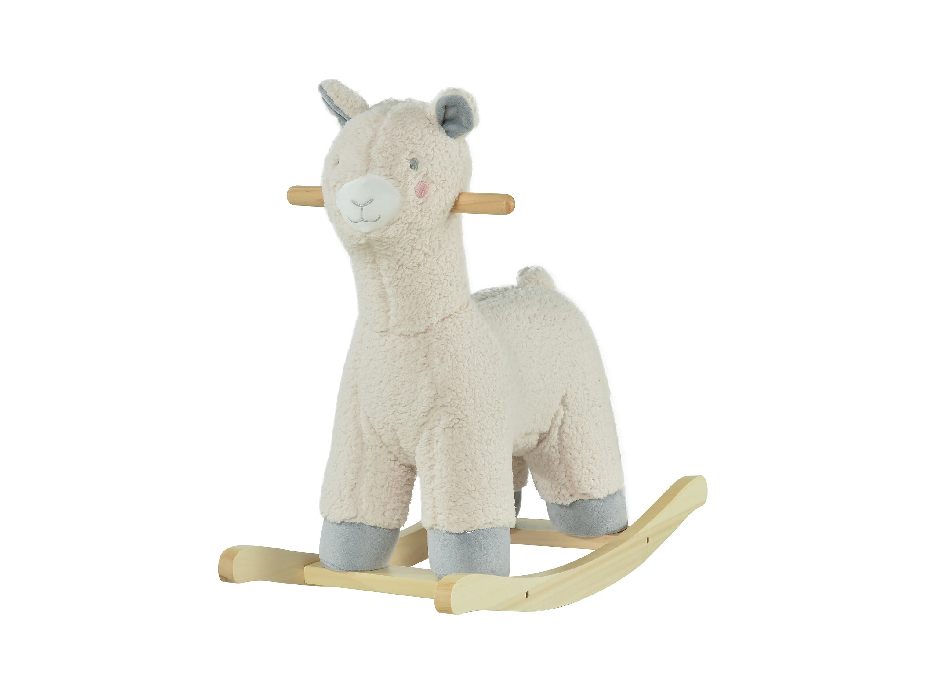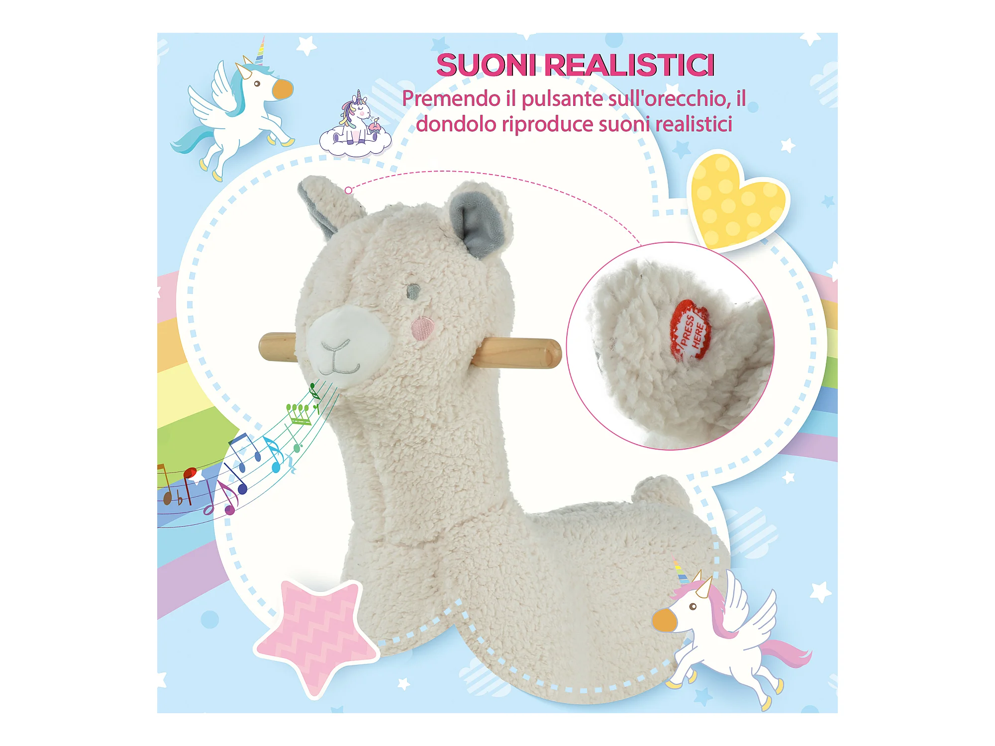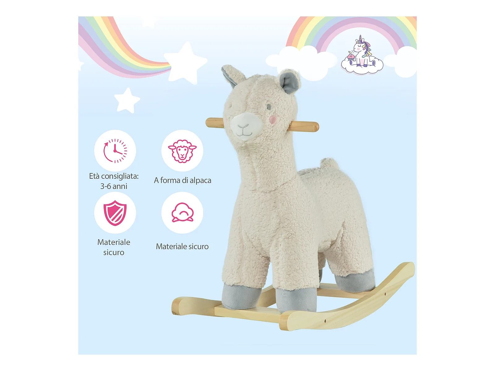 Cavallo a dondolo forma di alpaca per bambini in peluche bianco