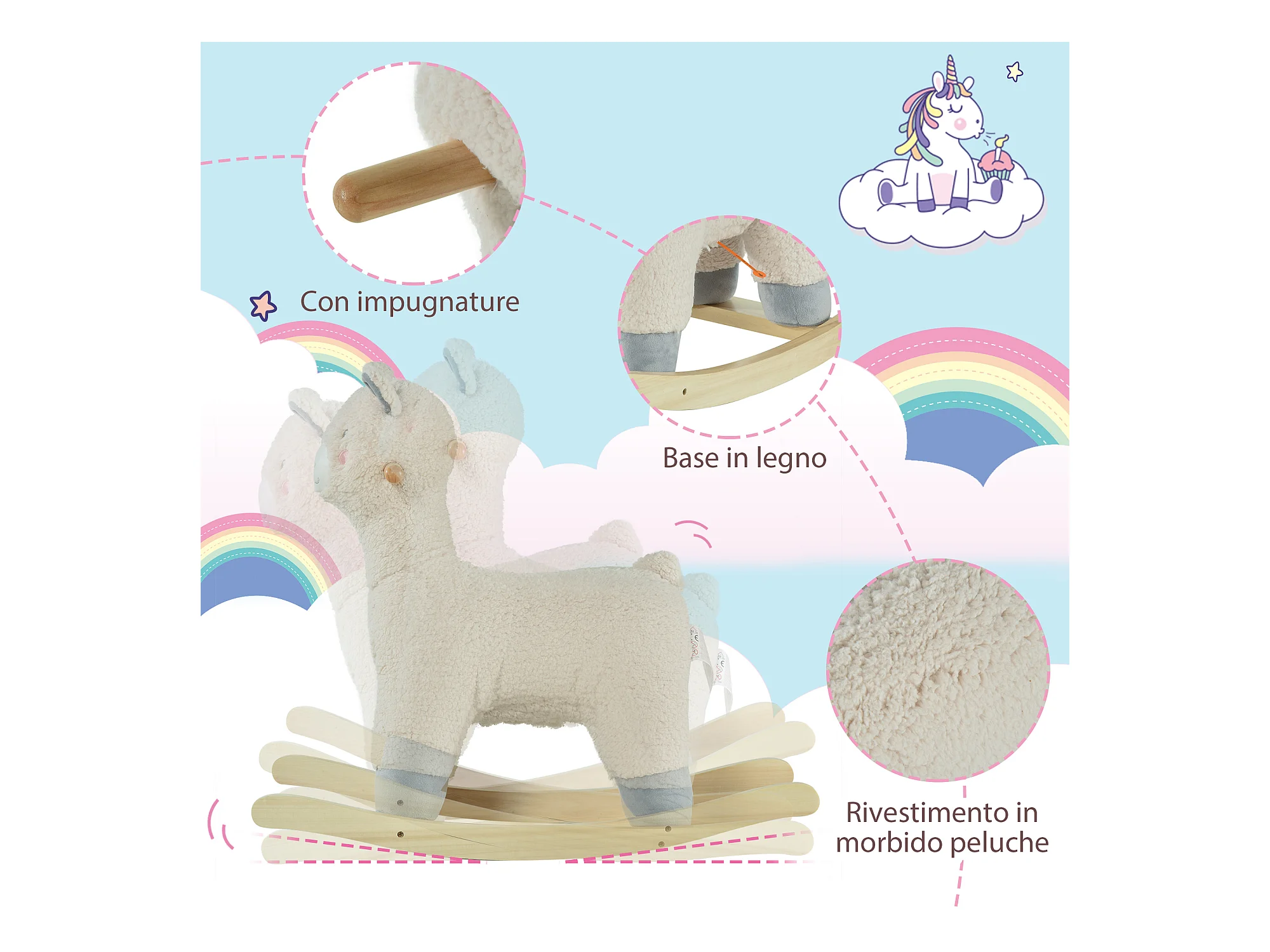 Unicorno a dondolo 2 in 1 con ruote rivestimento peluche suoni