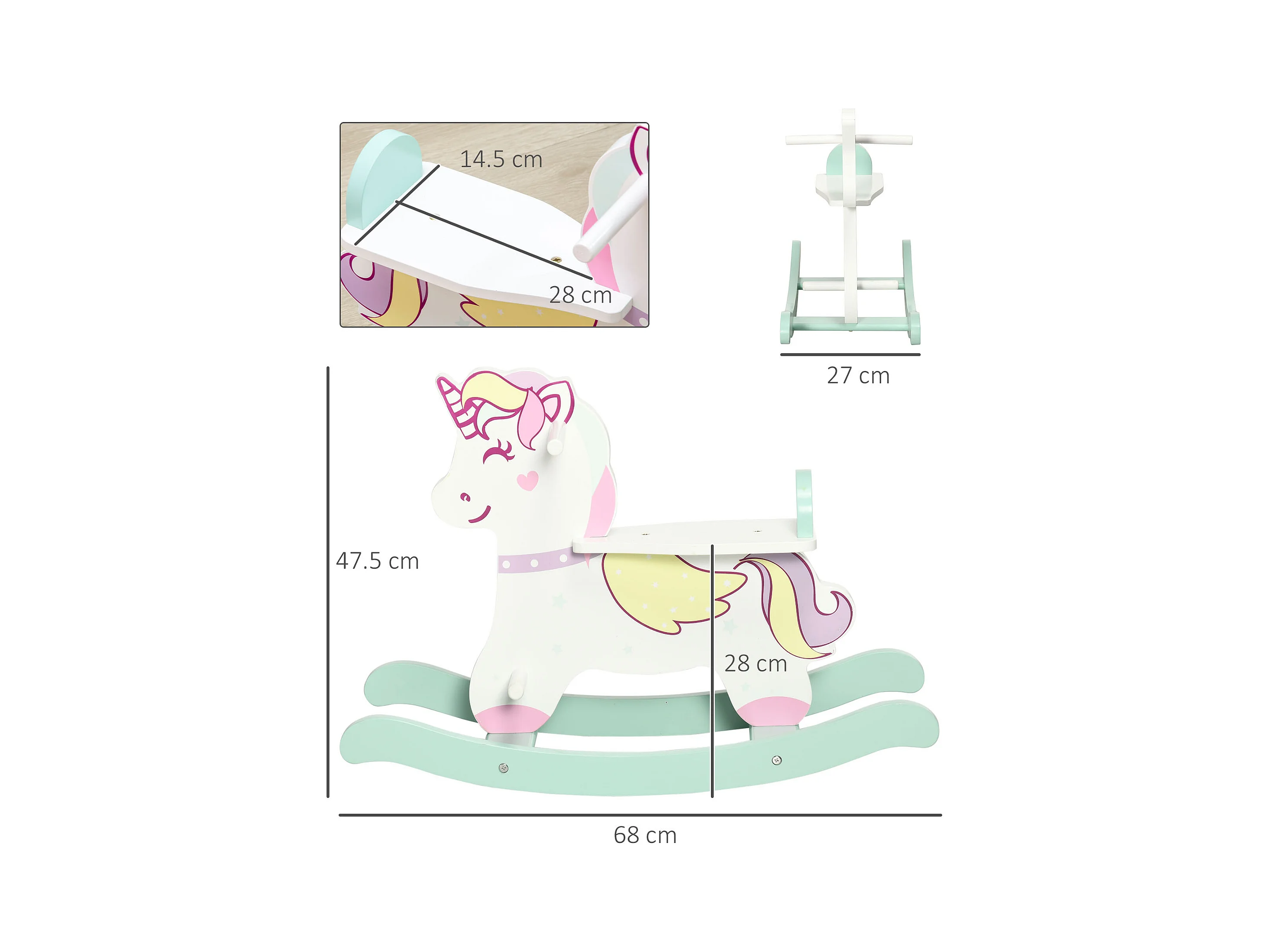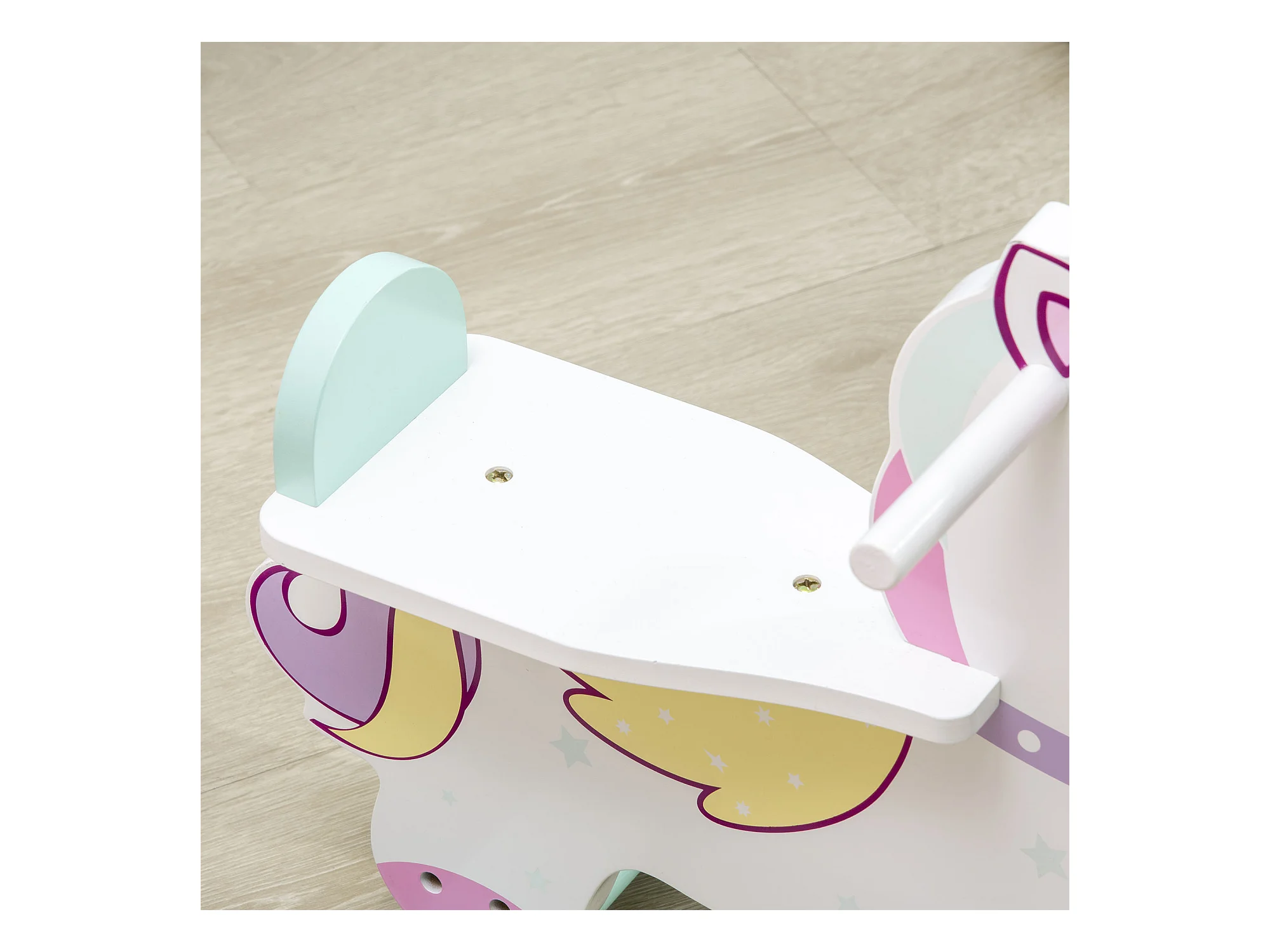 Cavallo a dondolo unicorno cavalcabile bambini in legno peluche rosa