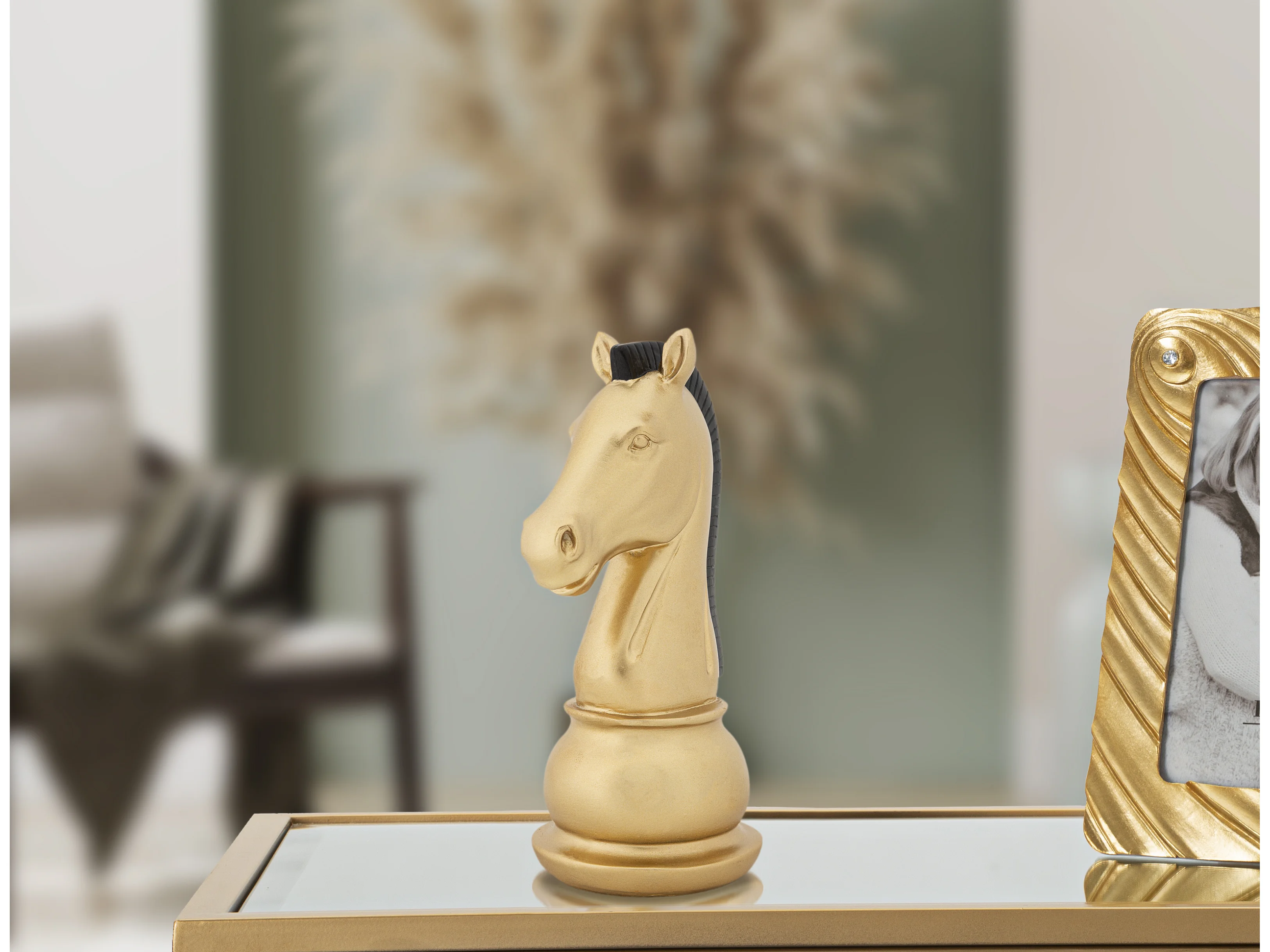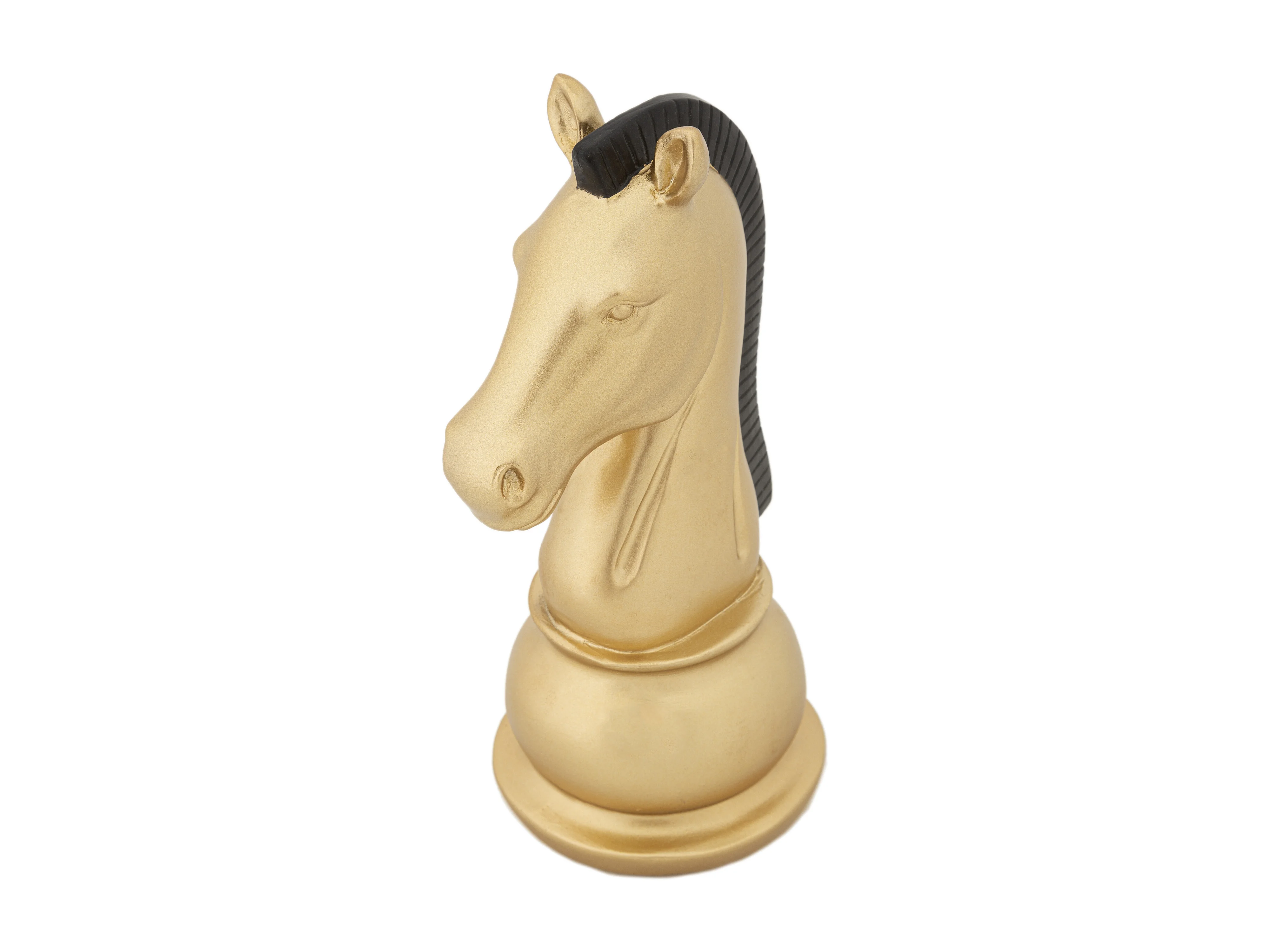 Cavallo degli scacchi in resina dorato e nero Ø cm 10,5x8,5x19