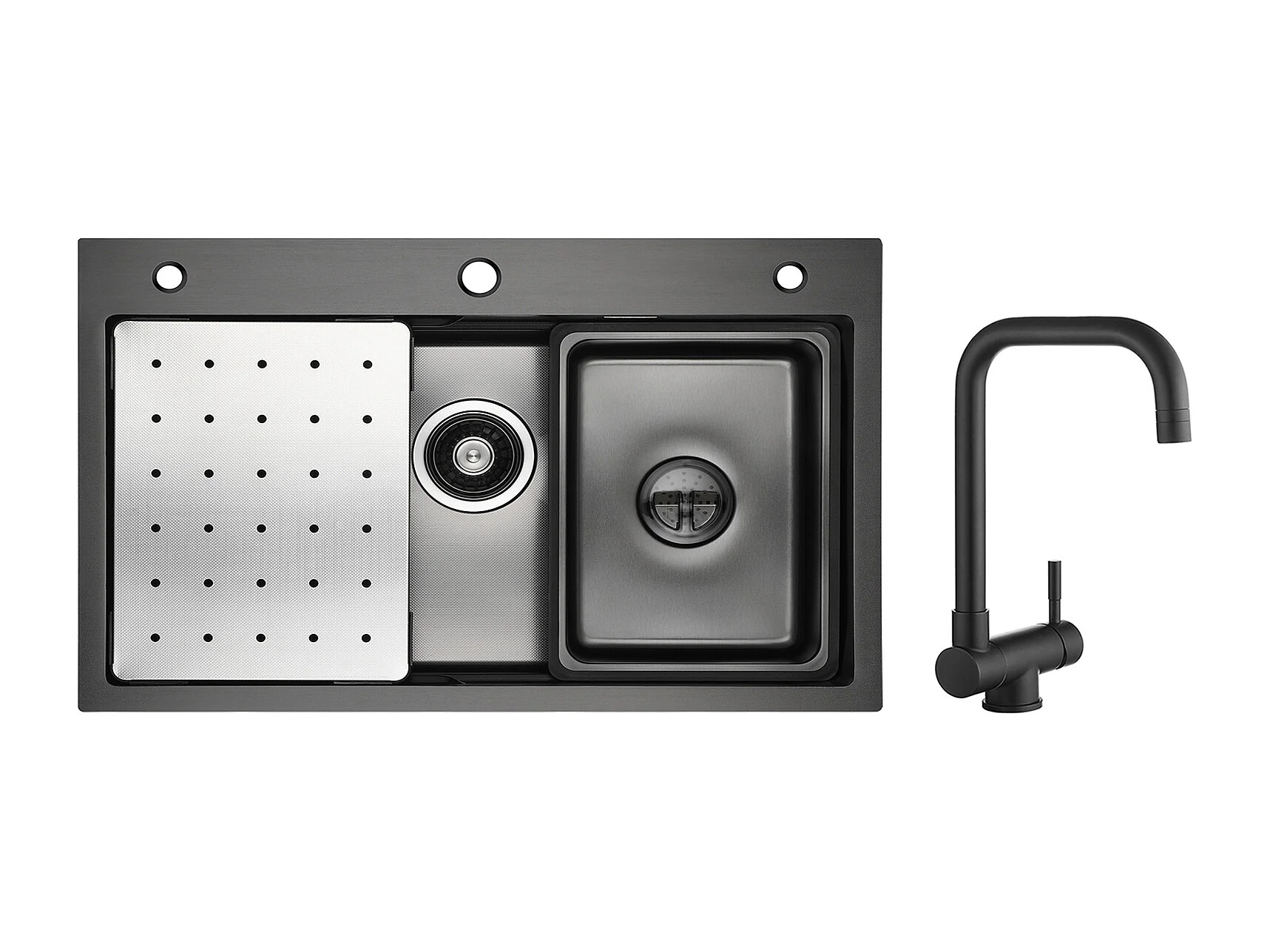 Cecipa max 1 Vasca Lavello 70×45 CM Nero con Gocciolatoio, Lavabo e Dosatore Sapone + Miscelatore Pieghevole Nero Miscelatore Pieghevole Sotto Finestra