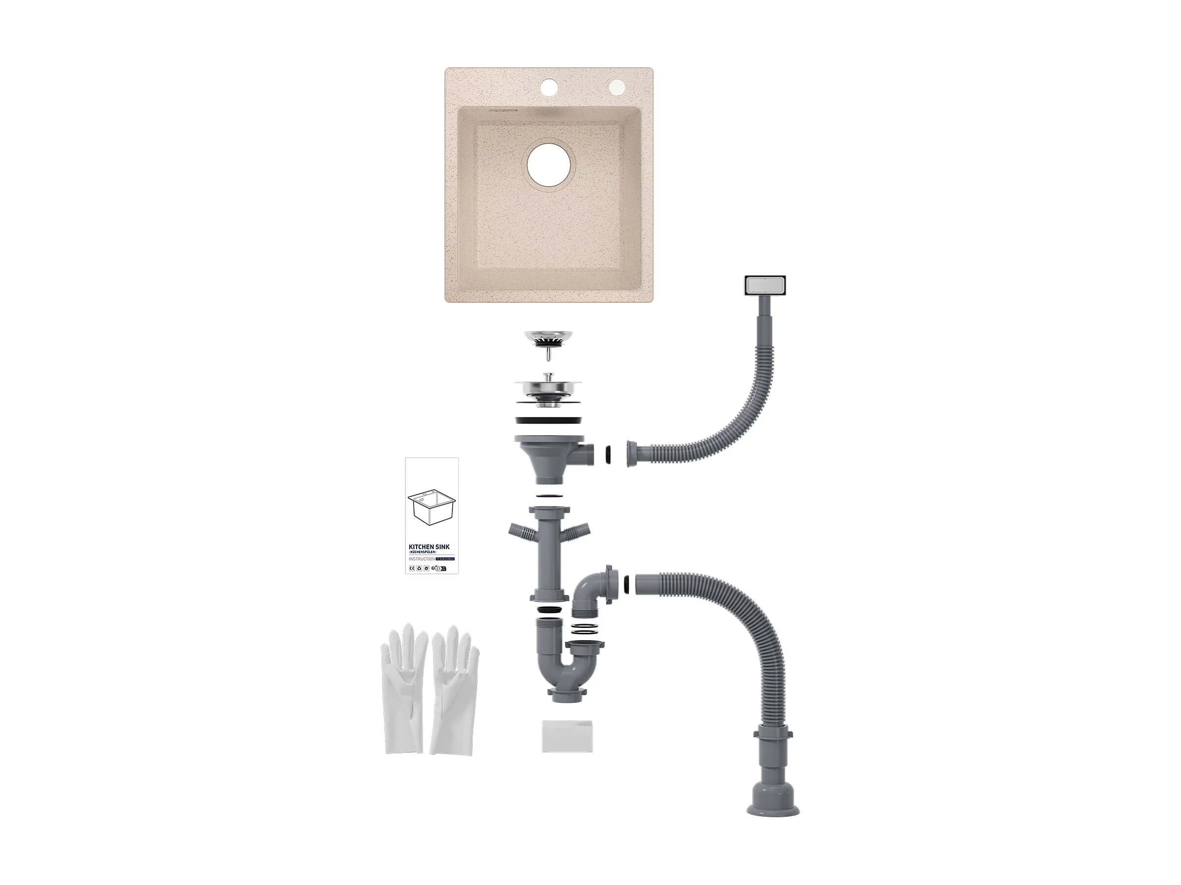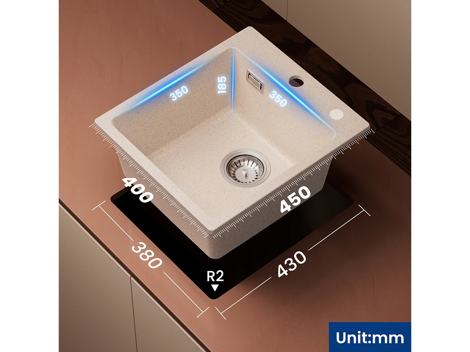 Cecipa max Lavello 1 Vasca in Quarzo e Resina Colore Avena Lavello Cucina 40x45cm Lavello Incasso 1 Vasca + Dosatore Sapone 300ML Nero