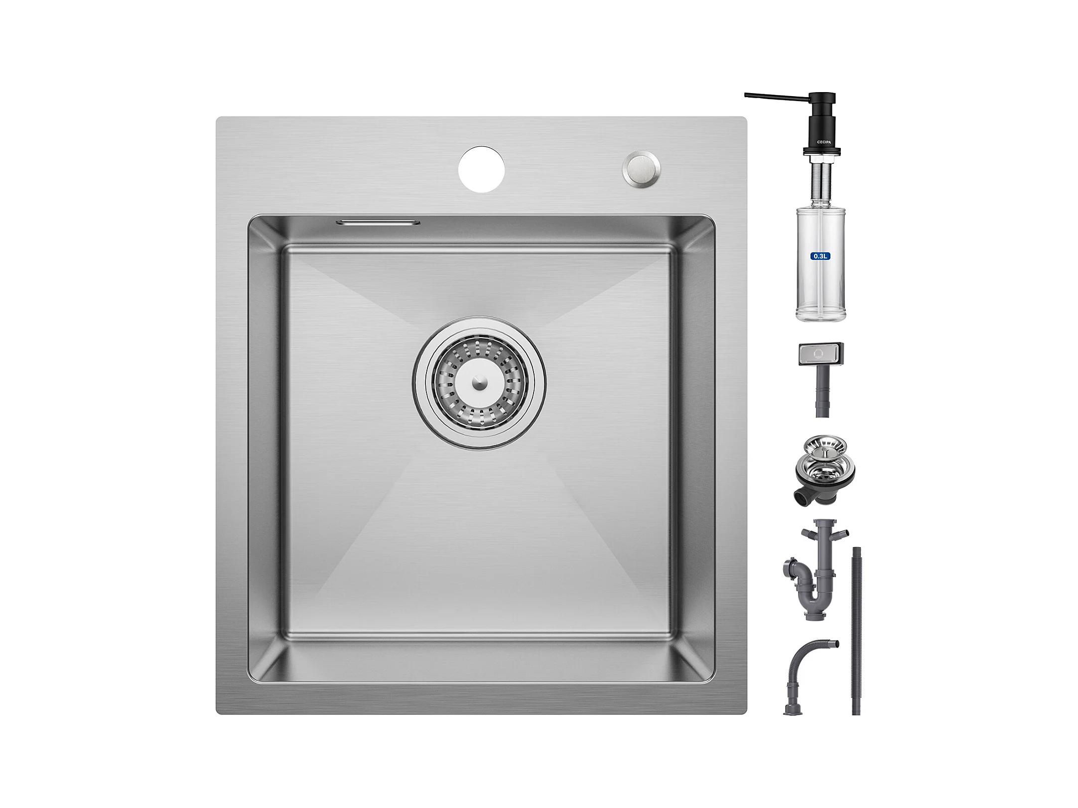 Cecipa max Lavello Cucina 1 Vasca 40×45 cm Lavello Acciaio Inox Spazzolato 1 Vasca + Dispenser Sapone Cucina Spazzolato con Contenitore 300ML