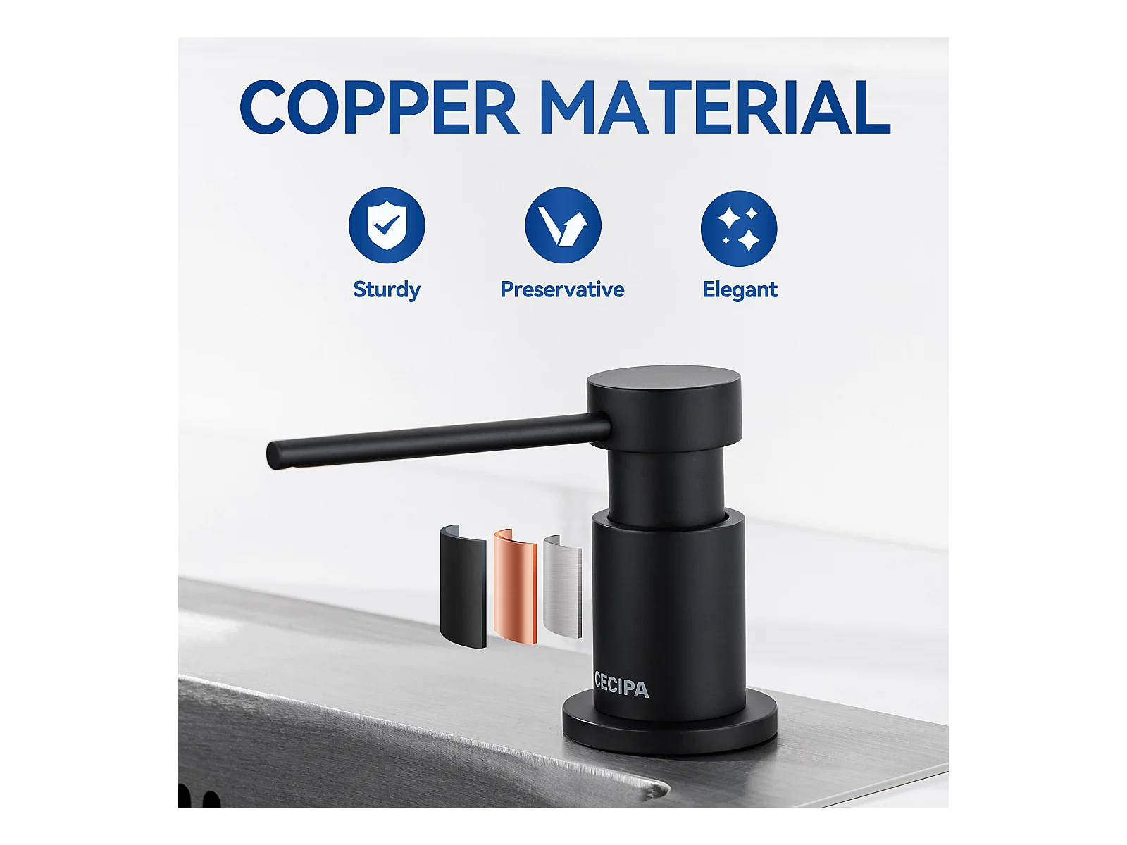 Cecipa max Lavello Cucina 1 Vasca 40×45 cm Lavello Acciaio Inox Spazzolato 1 Vasca + Dispenser Sapone da Cucina Nero