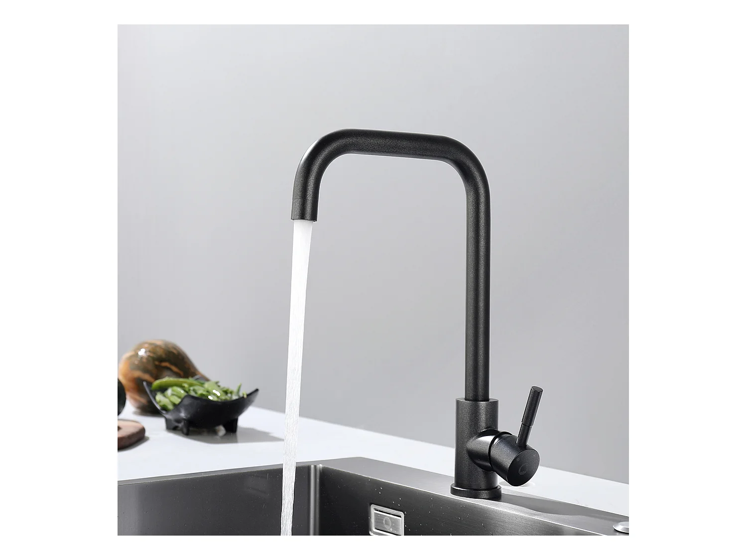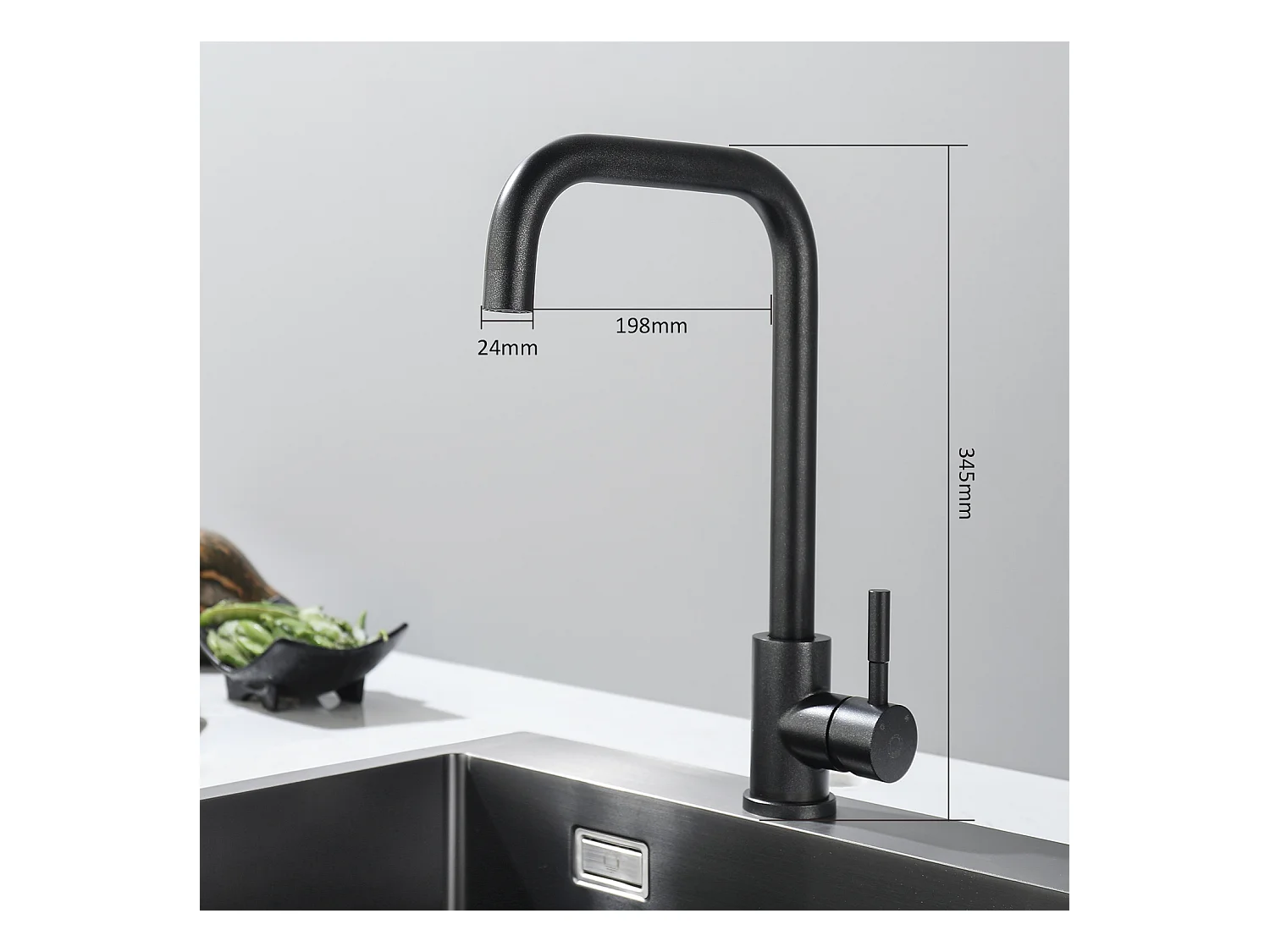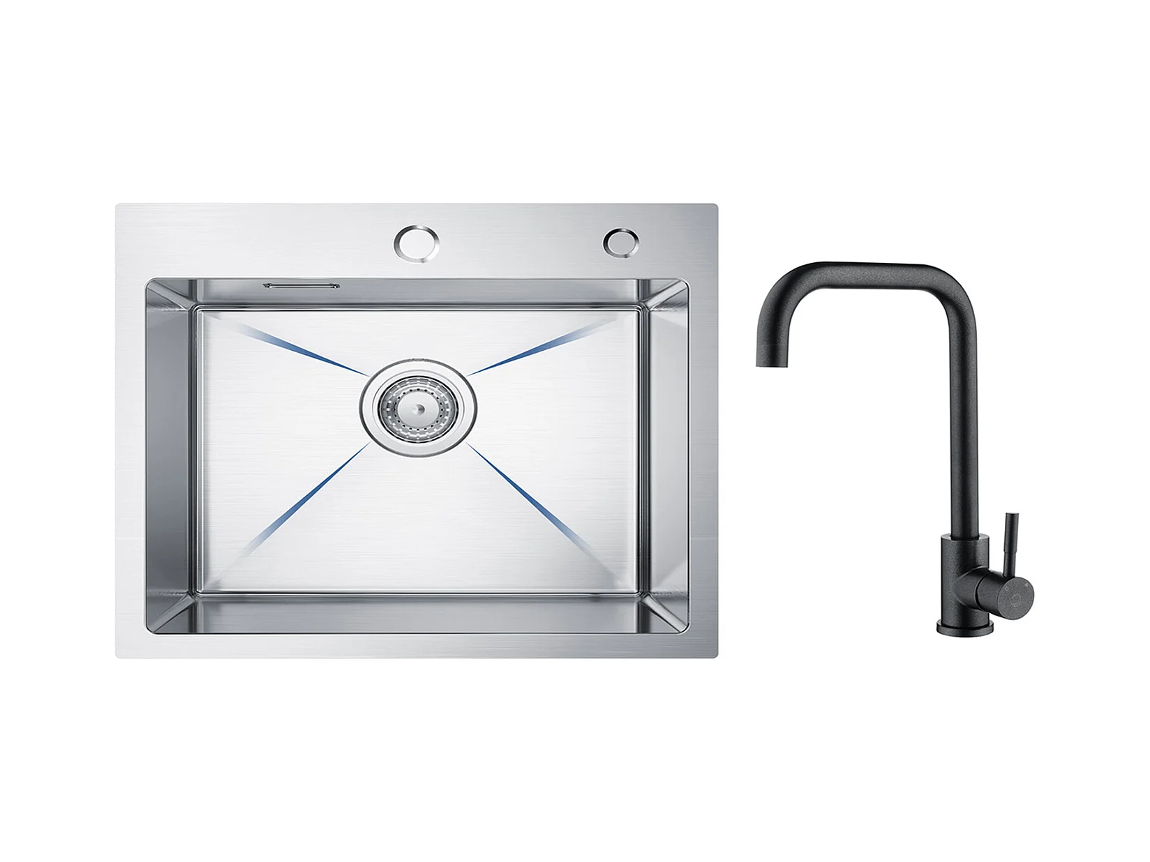 CECIPA MAX Lavello da Cucina 1 Vasca 50×45×18,5 CM Lavello in Acciaio Inossidabile Spazzolato + Rubinetto da Cucina con Acqua Fredda, Nero