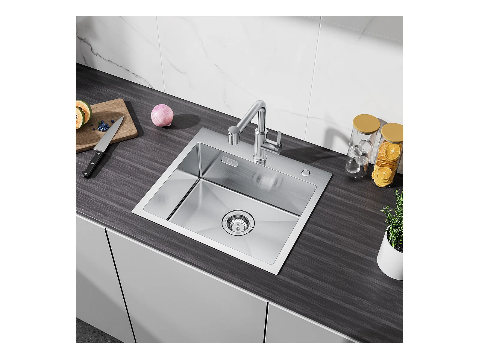 Lavello Cecipa max 1 vasca 50×45×18,5CM Lavello da cucina in acciaio inox spazzolato + dispenser sapone