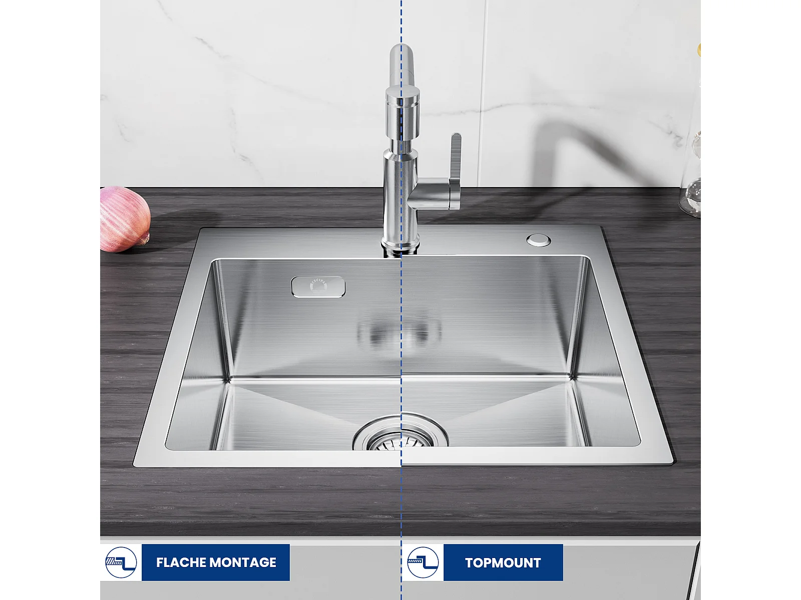 Lavello da cucina CECIPA MAX 1 vasca 50×45×18,5 cm Lavello in acciaio inox spazzolato + Miscelatore da cucina pieghevole spazzolato