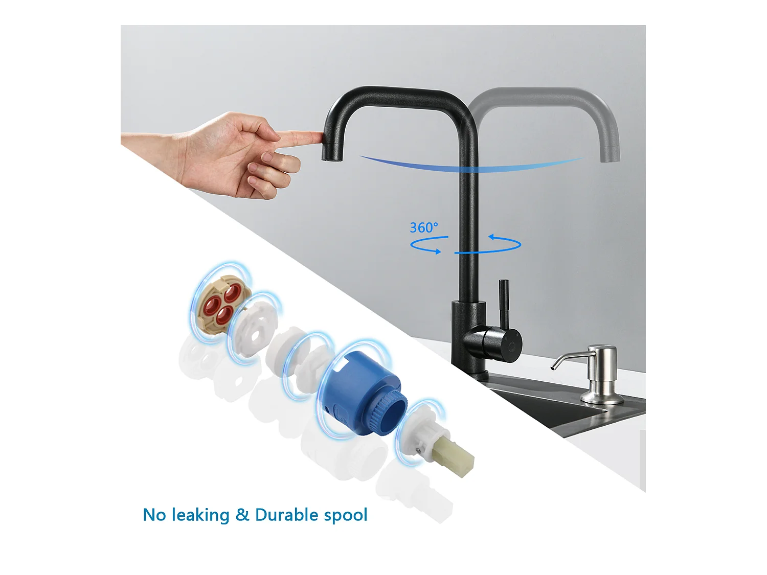 AuraLum Max Miscelatore Cucina a Molla A Spirale con 2 Funzioni Doccetta Rubinetto lavello Rotante 360°Inox 304 per Cucina, Spazzolato