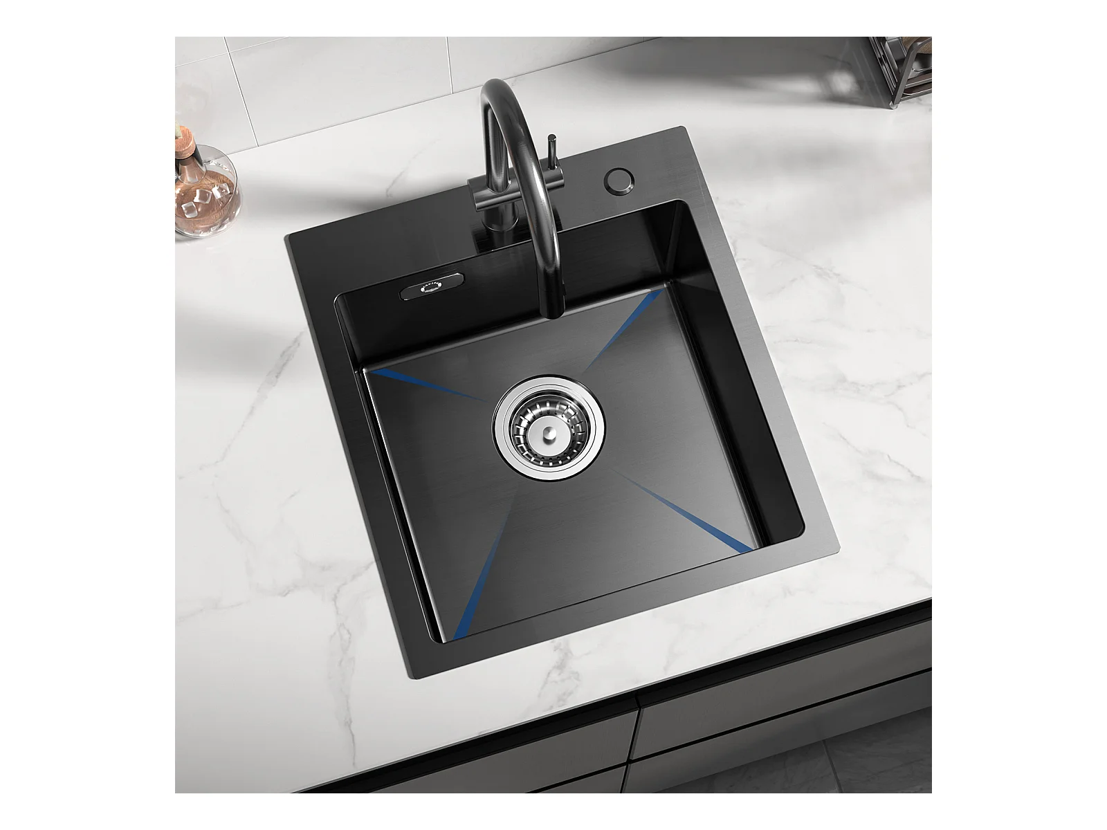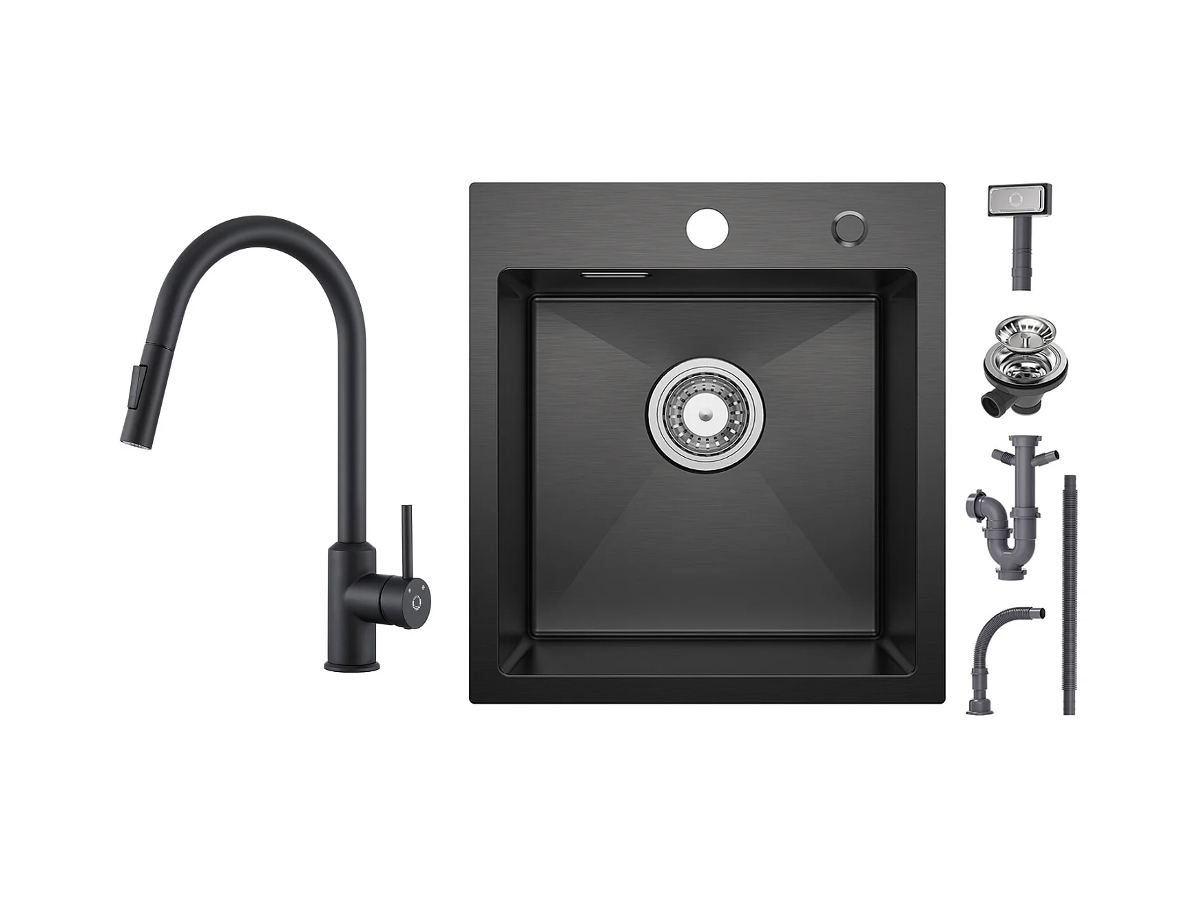 Lavello da cucina 1 vasca Nero antracite 40*45*19CM - Lavello da cucina in acciaio inossidabile + Miscelatore da cucina in acciaio inossidabile nero