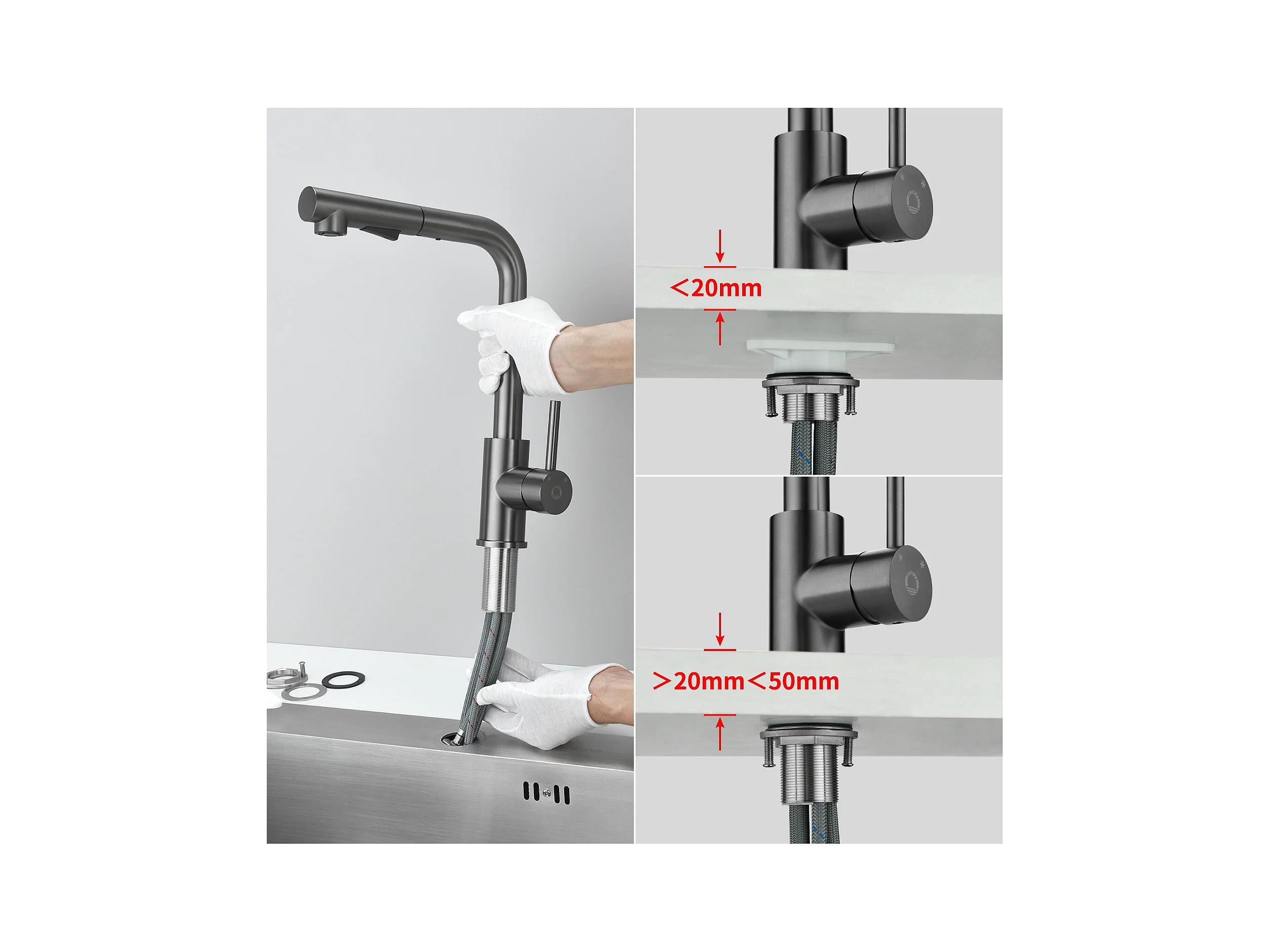 Cecipa max Miscelatore Cucina con Doccetta Estraibile Rubinetto Cucina con 2 Tipi di Getti Miscelatore Lavello in Acciaio Inox, Grigio Nero, Modello EU